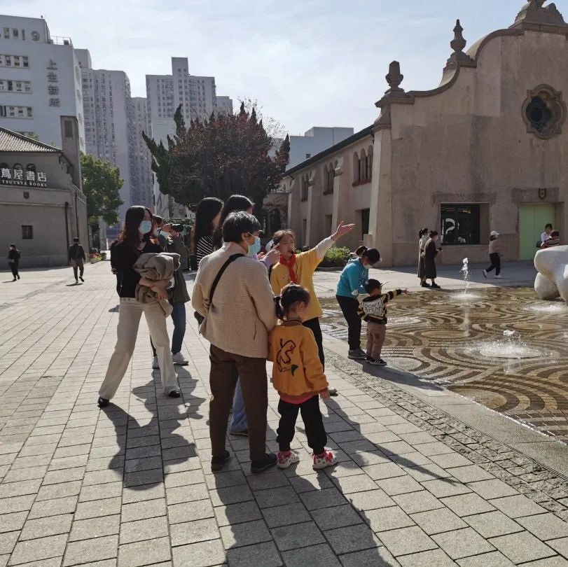 老师们说的真对啊!自从克服了心里的那道坎,我的性格也变得开朗大方起来。从10月上岗至今,每个周末我都会前往“上生新所”主展区为游客导赏。我会主动走上前询问游客的需求,会热情地解答游客的疑问,还会带领游客从馆内走到园区,把我对艺术展品的美的理解、上生新所老建筑的故事,还有新华社区的15分钟便捷生活,一一和游客们分享。就这样迎来送往,一批批游客兴致勃勃而来,回味无穷地离开。直到休息片刻,才发觉自己口干舌燥、腿脚发痛。但是我一点也不觉得累。