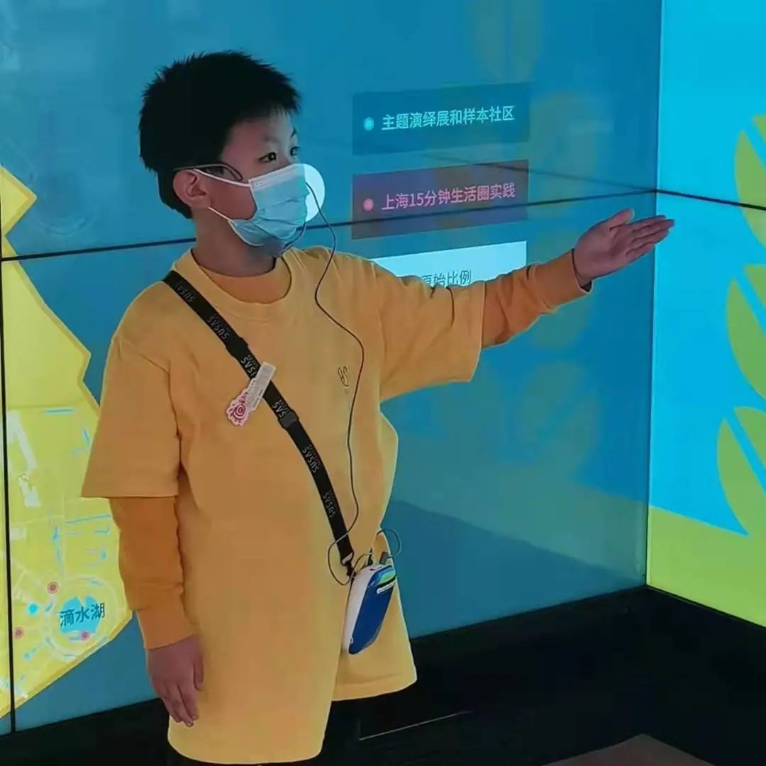 这是今天上午我接待的第三组游客了。我作为小小城市导赏员所服务的上生新所主馆,是这次上海城市空间艺术季的示范区——新华社区的重头戏之一。每当有游客走入展馆,我们都会热情地走上前,为他们讲解这个展览中的每一处细节,指给他们看我们这个城市了不起的进步。
