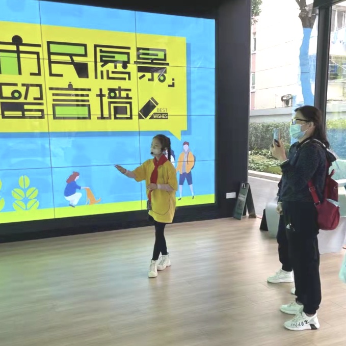 作为年龄最小的导赏员,在刚刚接待游客时,我依然腼腆紧张,但是当我发现,通过讲解,我可以把新华街道的文化和“十五分钟社区生活圈”的知识普及给很多游客,在得到大家一次次掌声,甚至主动要和我合影时,我变得越来越自信勇敢了。现在我可以勇敢的走向前去询问:“欢迎您来参观城市艺术展,请问您需要我的讲解吗?”