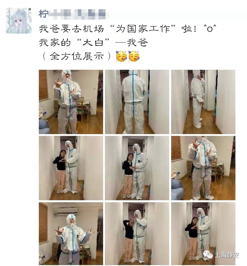 现在,在组织的召唤和家属的大力支持下,我再次加入了抗疫大军。我相信,在上级领导的关心下,在静安“双专”(抗疫专班和专业人员)的指导和帮助下,在全体抗疫队员的共同努力下,静安机场抗疫工作一定会越做越规范,越做效率越高。