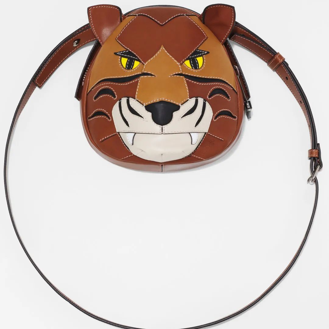 ●立体老虎装饰皮革斜背包