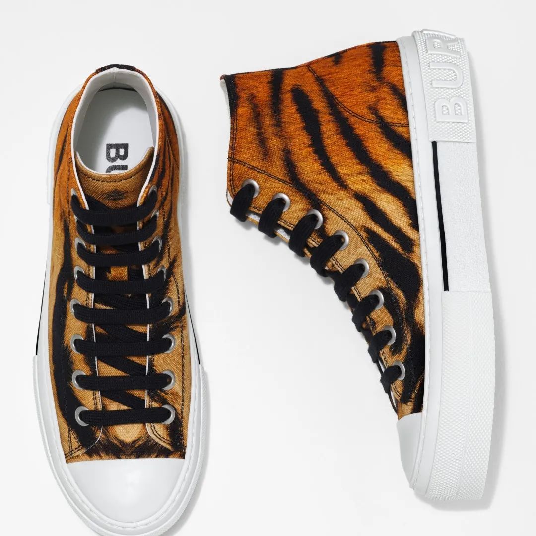 ●虎纹印花棉质高帮运动鞋