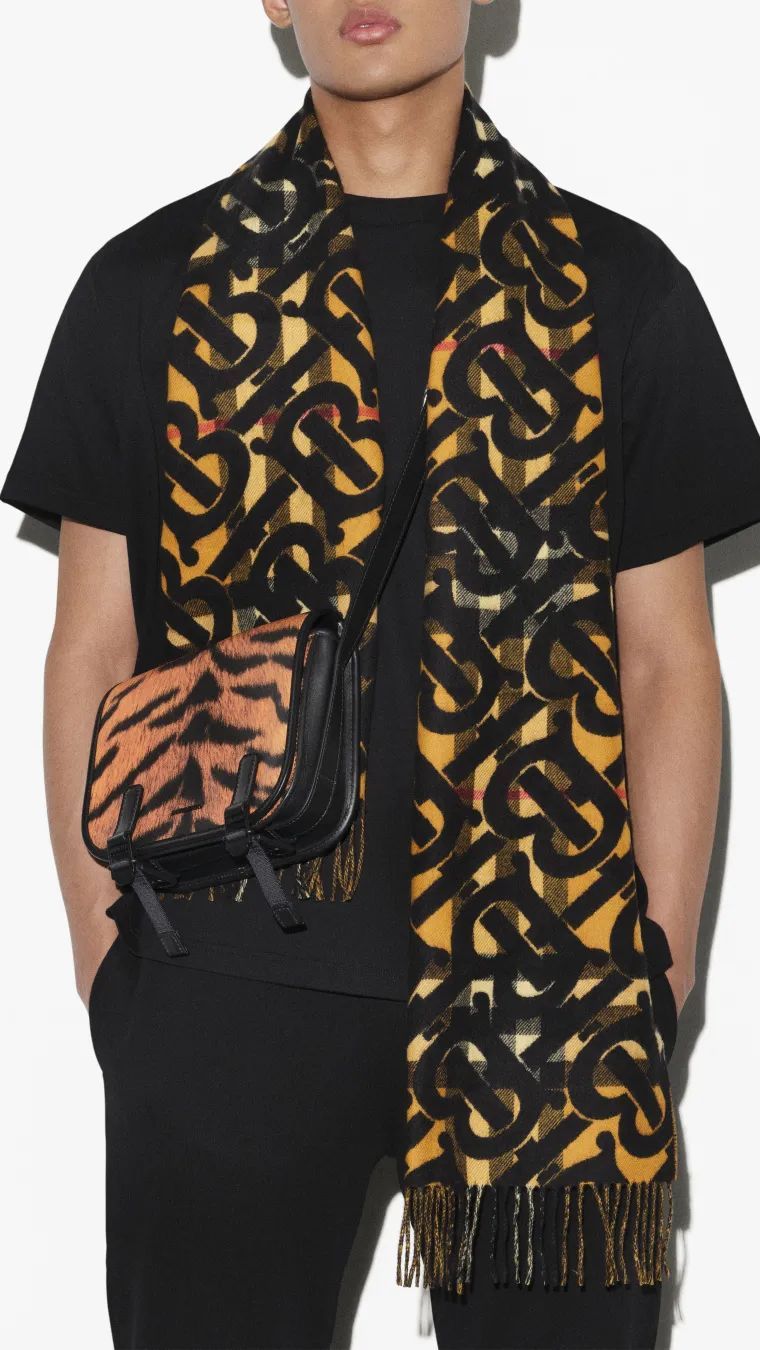 ●虎纹印花信使包&专属标识印花格纹羊绒围巾