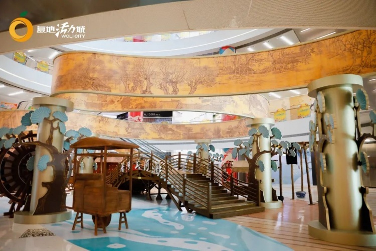 上海复地活力城推出的“汴梁一梦”《清明上河图》沉浸式体验展,就选取了整个画作的视觉中心和情节的高潮部分——汴水河上的虹桥,结合北宋时期的社会背景、民俗、建筑特色,搭建起实景,带你“穿越”到画中,慢慢挖掘其中的故事。现场还设有古风主题市集、主题快闪店,上演国风舞蹈快闪、传统文化体验、国潮民乐表演等,打造沉浸式的国风氛围。