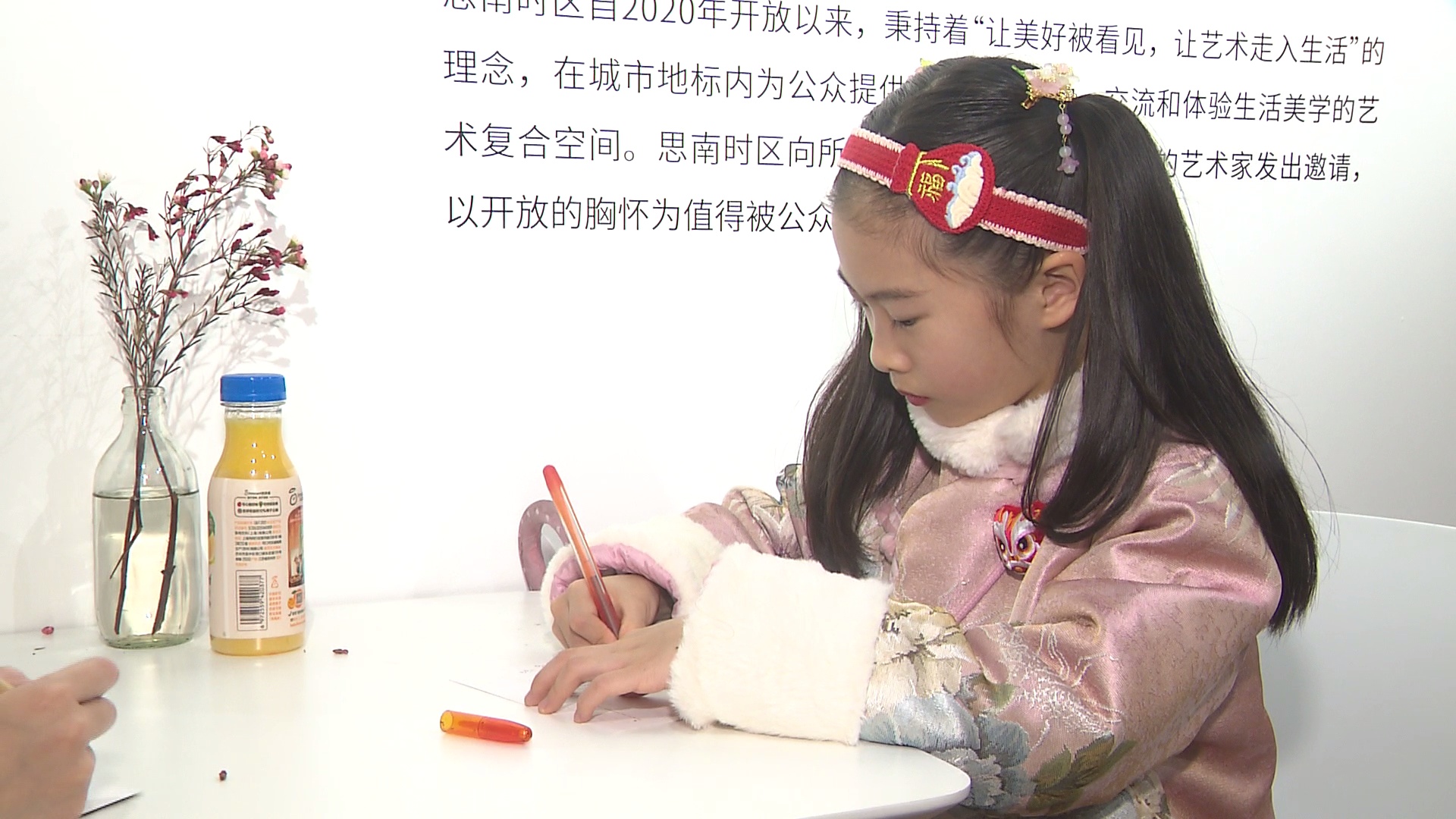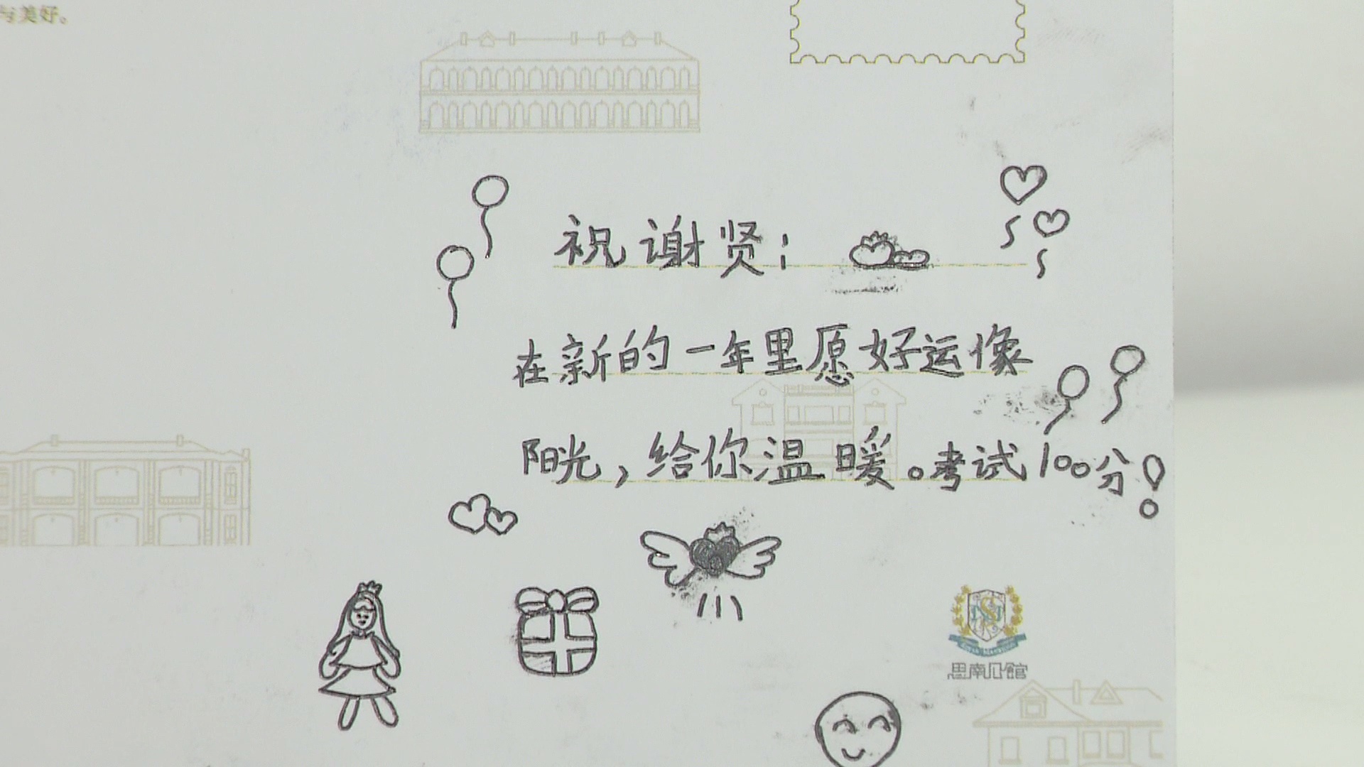 在“一纸书信开启暖冬”环节,小朋友们在明信片上写上迎新祝福语,向最爱的人述说自己的情感。王锐欣小朋友就是其中之一。