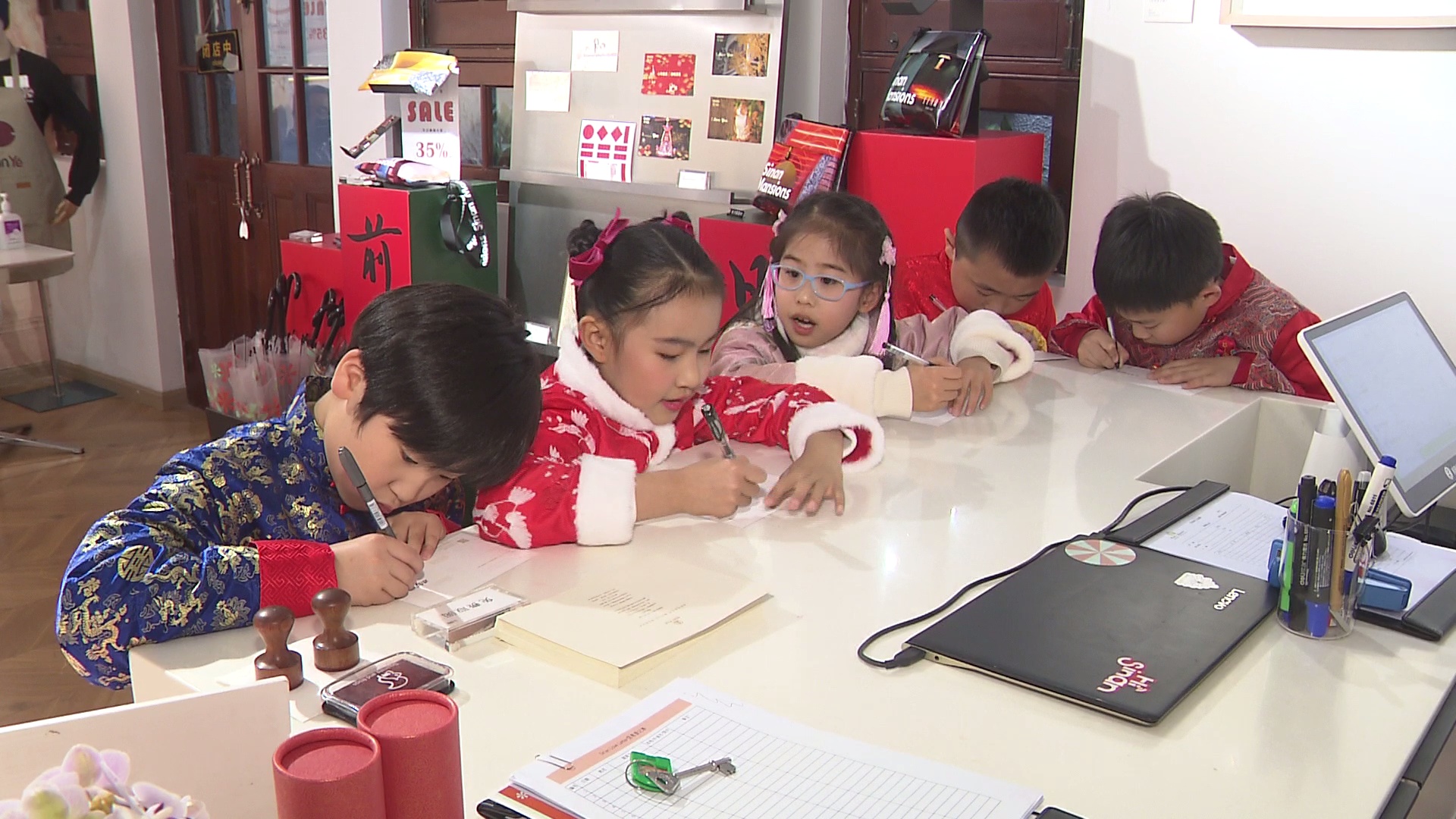 在思南时空画廊,小朋友们正在朗诵有关春节的古诗。