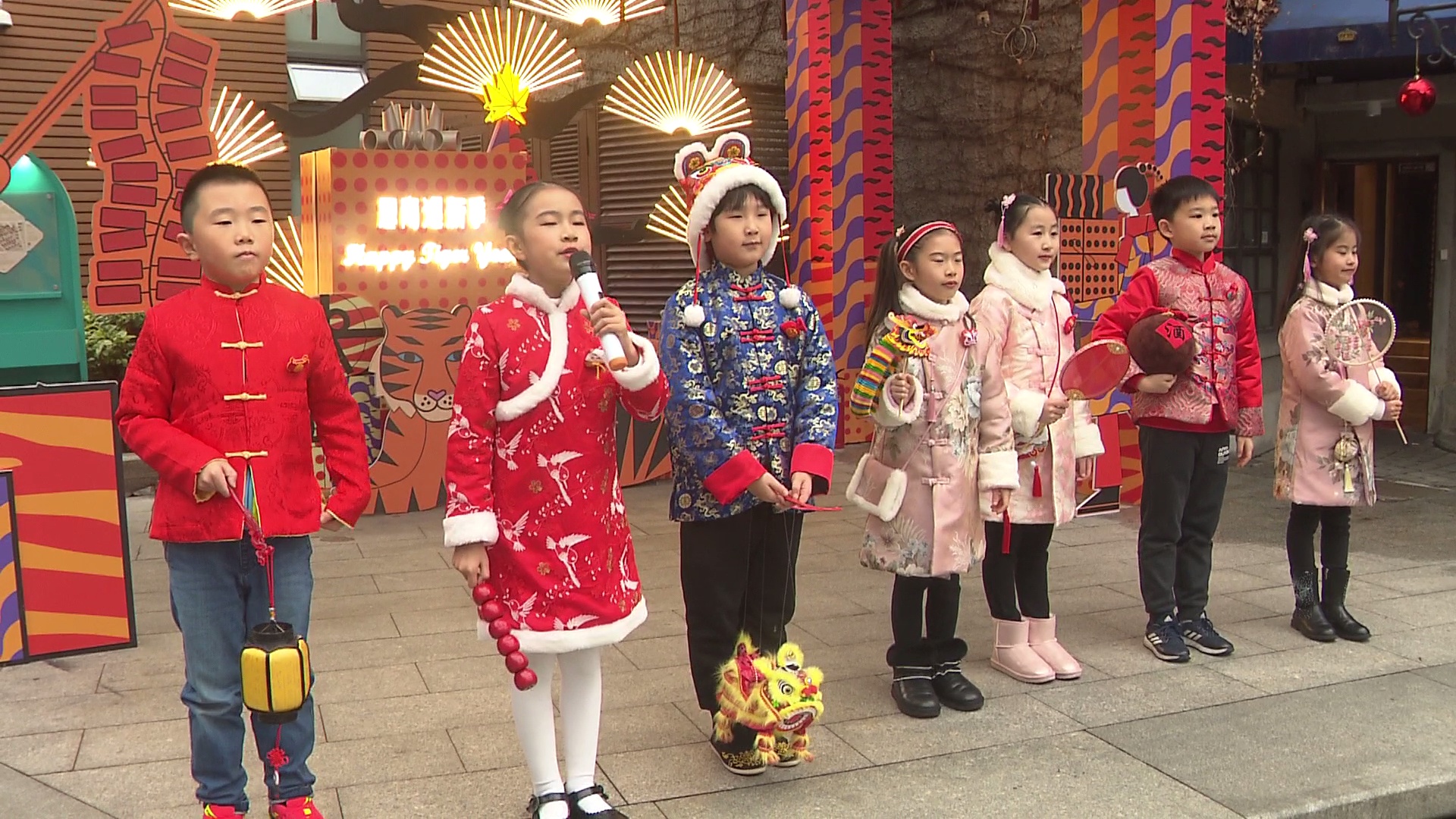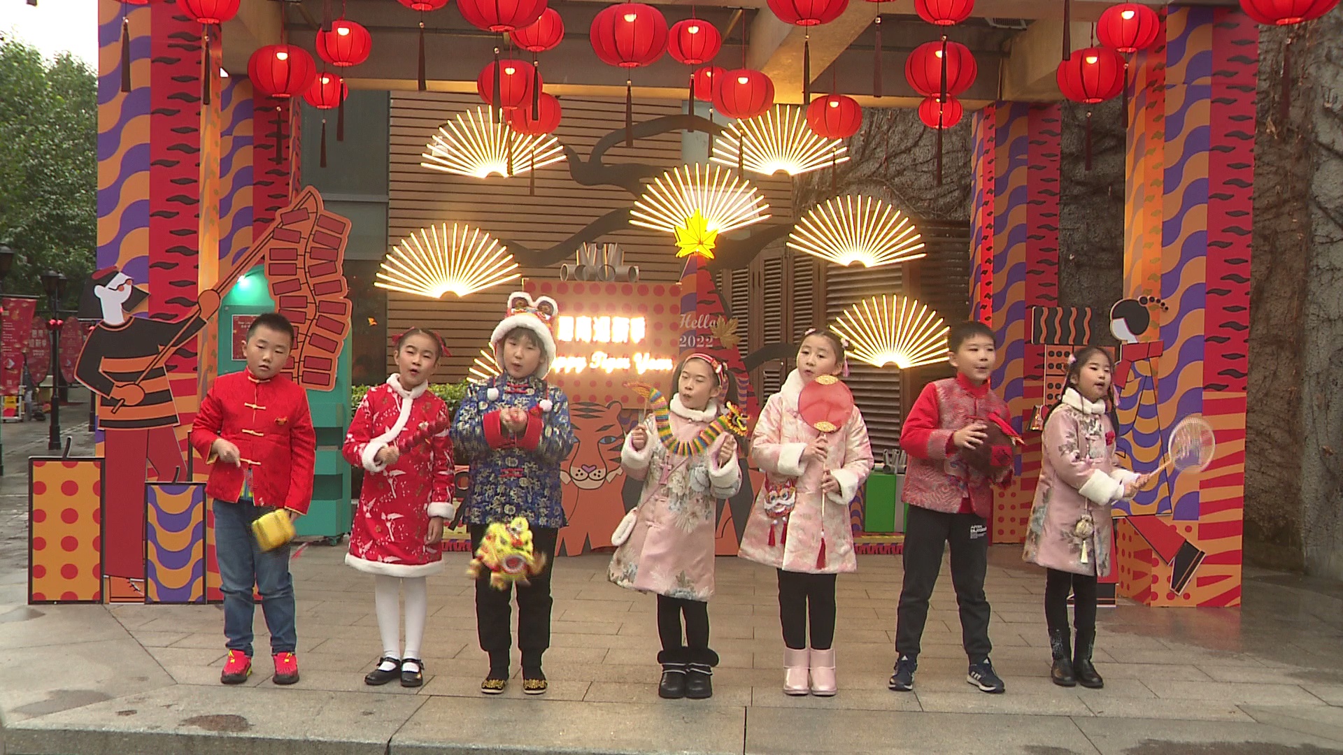 在思南公馆小广场,小舞台上的大红灯笼和虎年装饰显得格外喜庆,小朋友天真烂漫、充满童趣的表演让不少市民驻足。经典儿歌《小孩小孩你别馋》把人们的思绪带回了童年时光,一些市民拿起手机,记录下这难忘的瞬间。