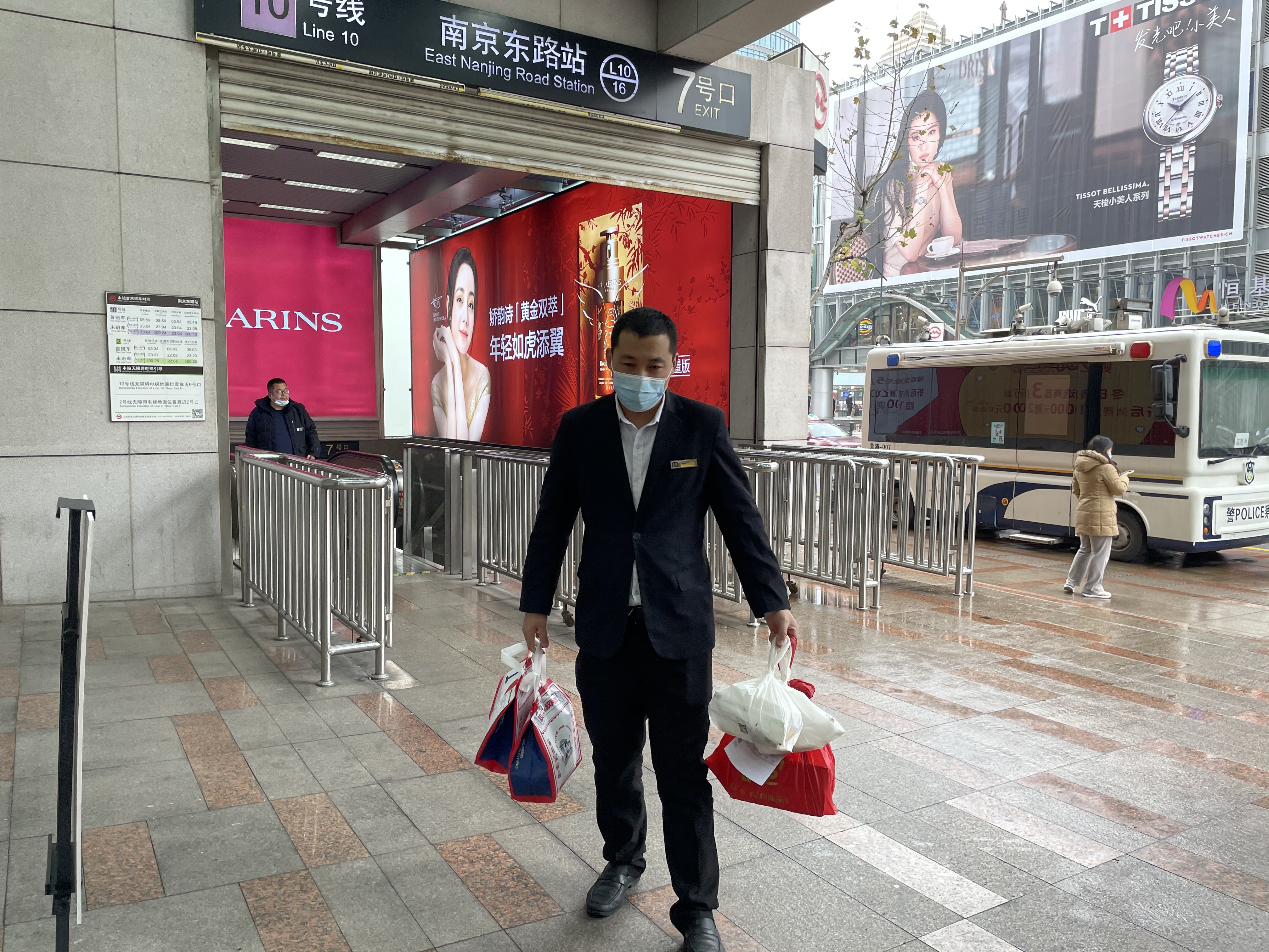 和往常所不同的是,他并没有进入商场,而是来到商场位于河南中路的通道处,这些外卖已经被安放在此地,在他准确报出相关信息后,商场工作人员将与之对应的外卖递给他,整个过程在半分钟左右。