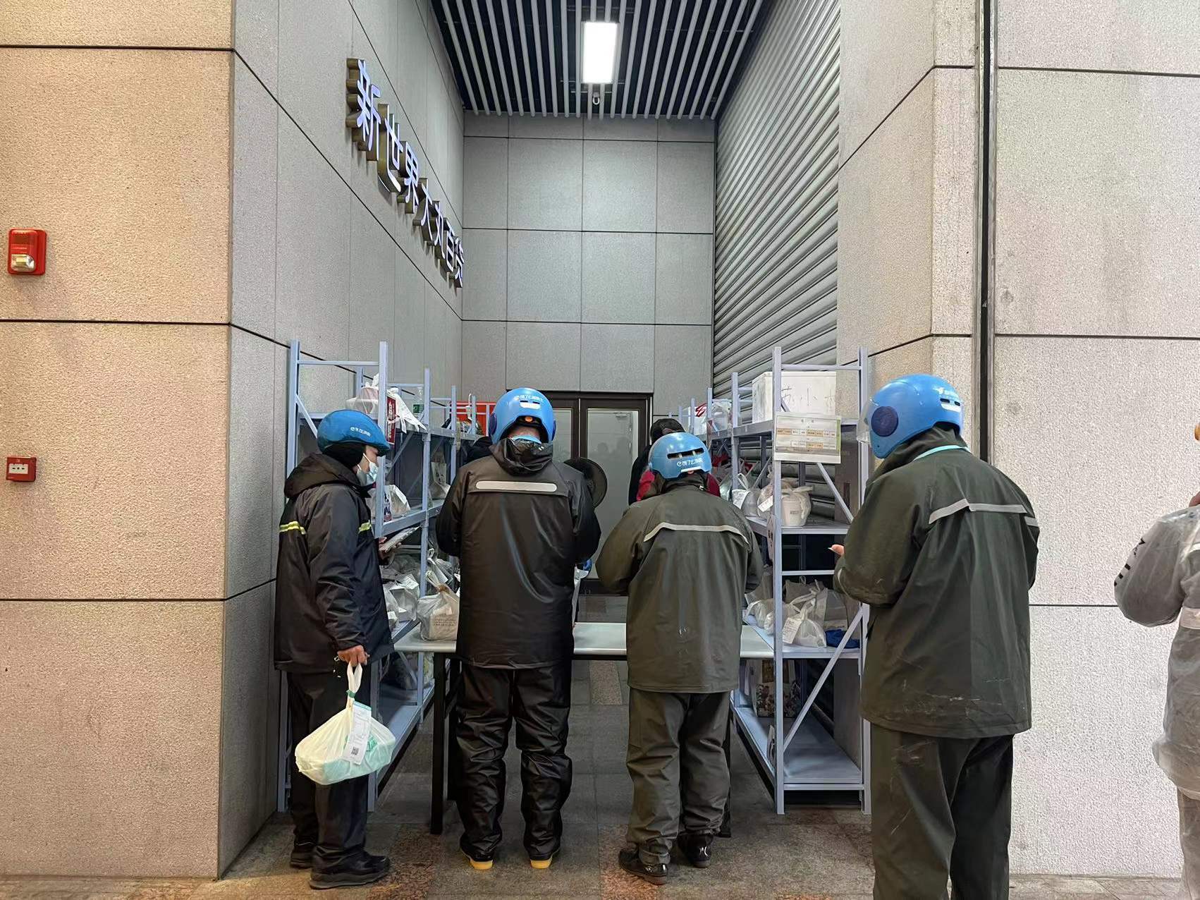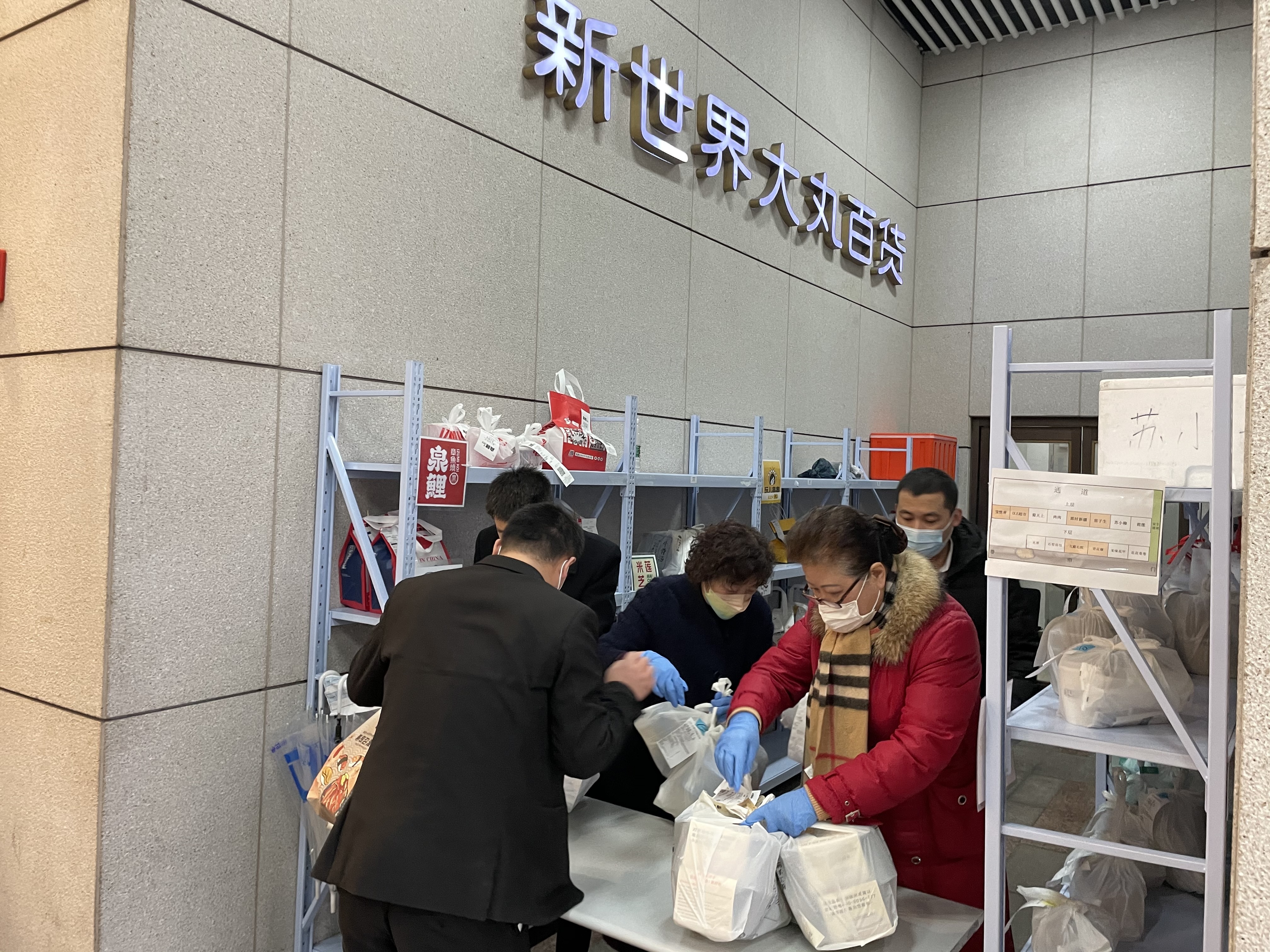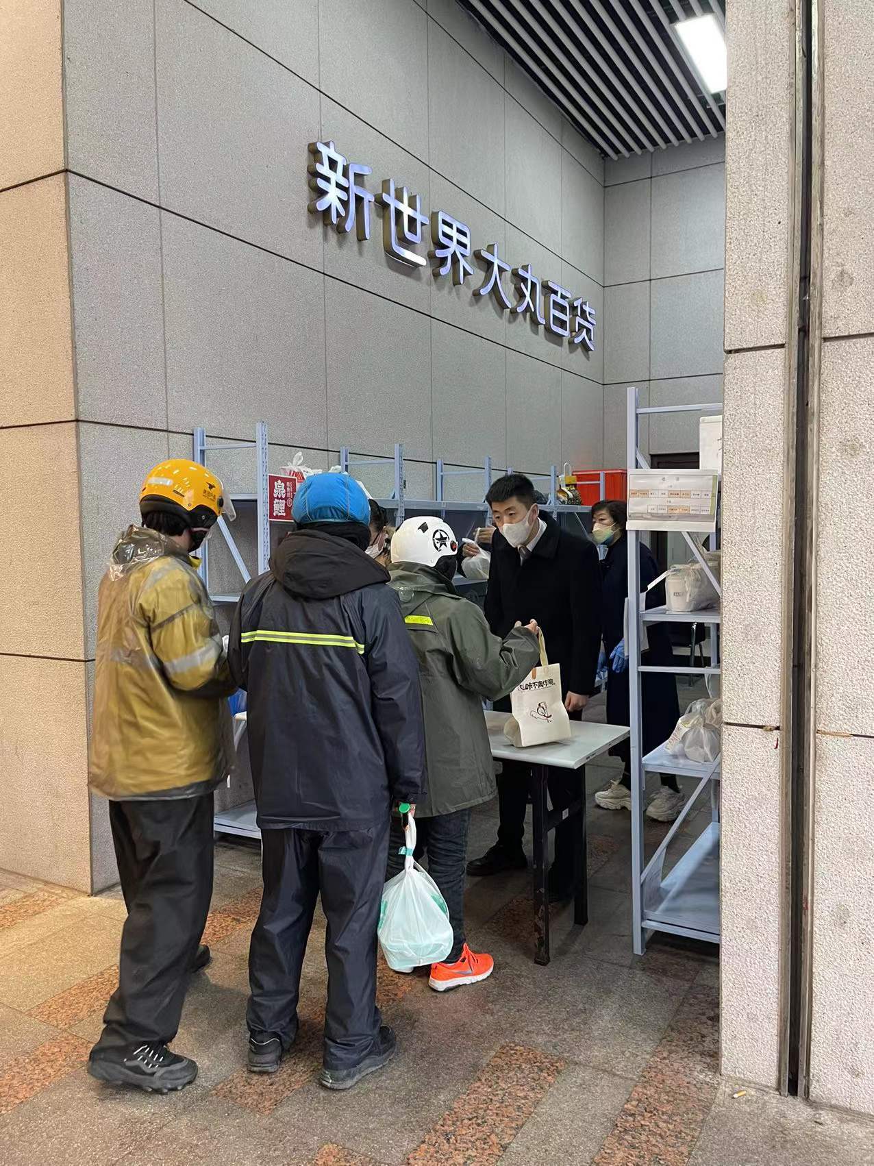 据新世界大丸百货相关负责人介绍说,“此次新设置的这个统一取餐点,是为了配合疫情防控工作,减少不必要的人员流动。商场内所有品牌的餐饮外卖,统一由商场工作人员提货后将之放置于此。设置前,我们和相关外卖企业做了沟通,也在门口张贴了告示并安排安保人员进行解释。外卖员在进入商场之时,如果其目的是为了取餐,那安保就会提醒他来到统一取餐点,如果是为了逛街购物,商场方面也非常欢迎。同时,为了提升取餐效率,缩短取餐员的等待时间,商场方面还专门增设工作人员,特别是在餐饮高峰时期不间断流转,让外卖配送员都能尽快取餐。”