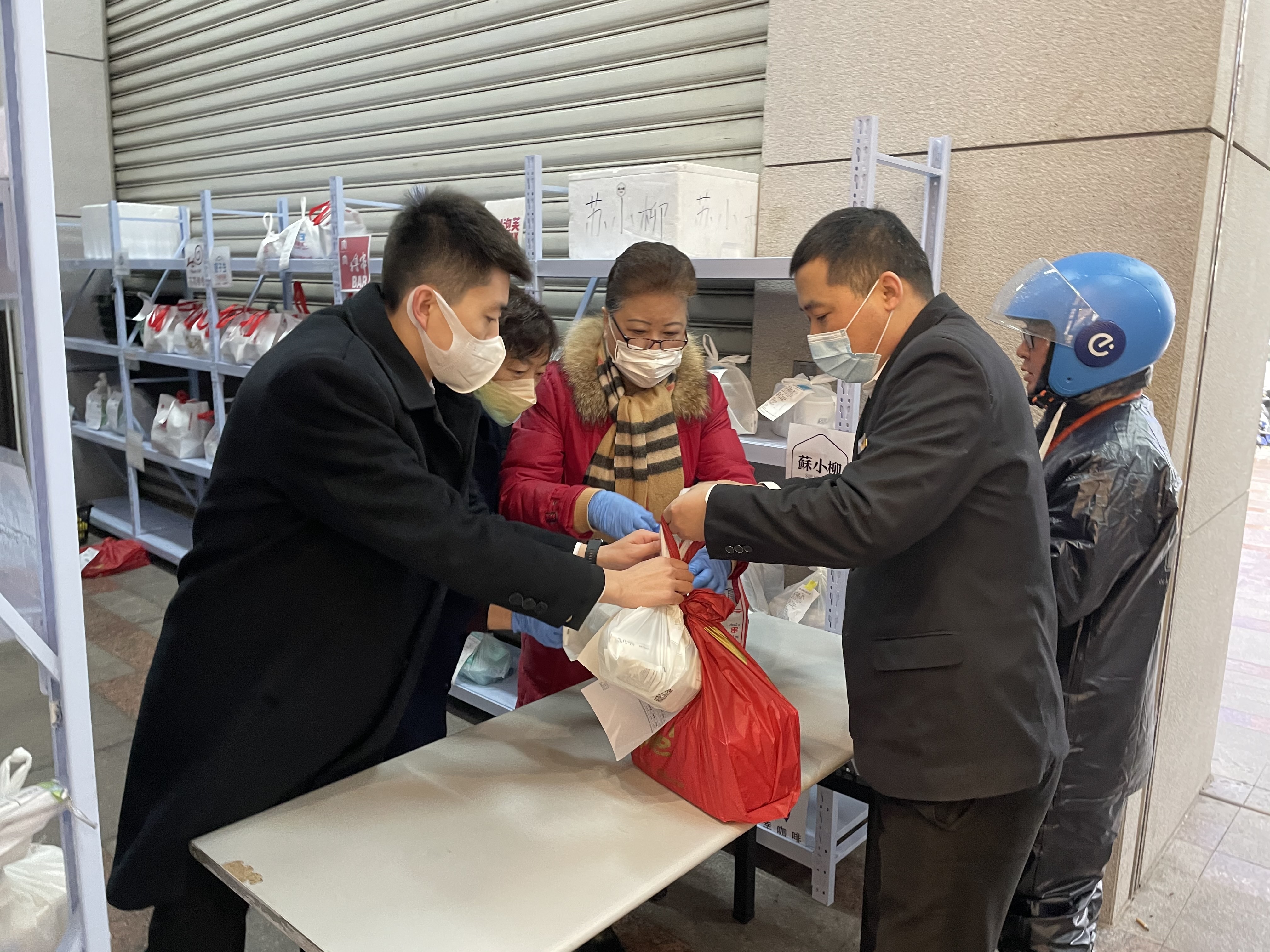 此外,对于商场内员工的外卖用餐需求,商场方面在天津路进口处,摆放了一个专门的保温餐饮柜,外卖人员和商场人员均在此处收送外卖。
