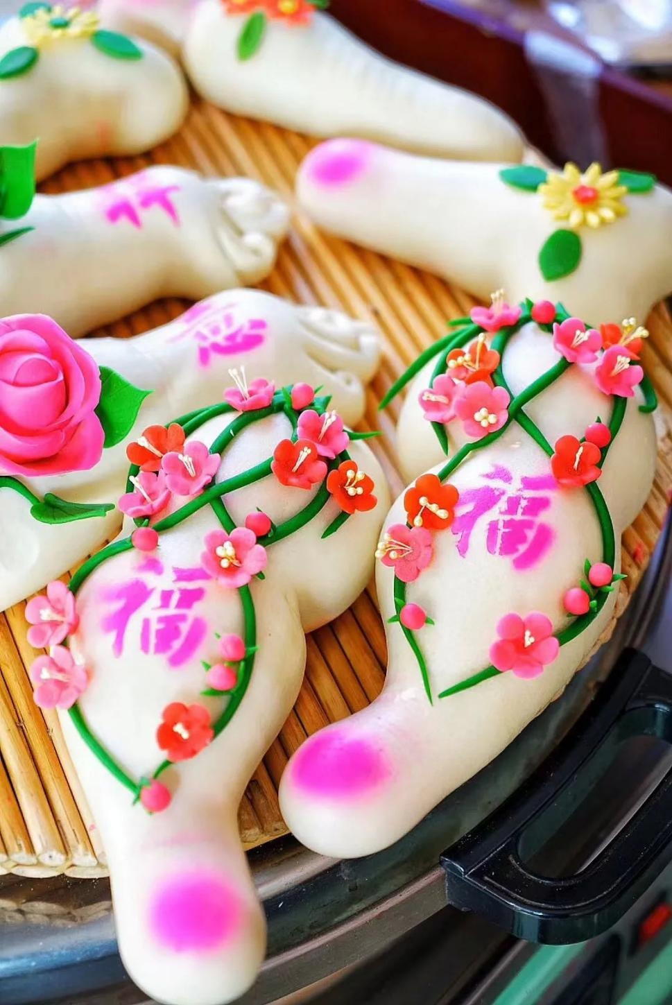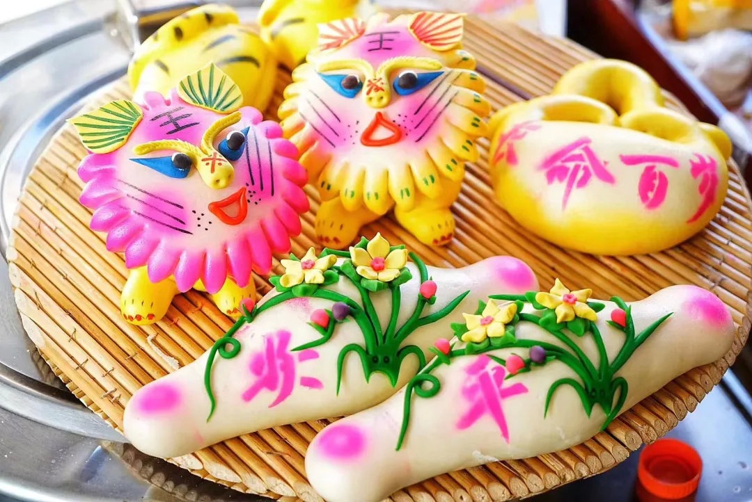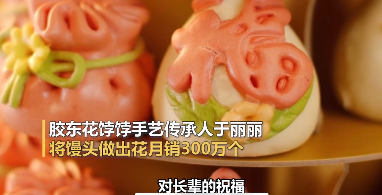 当简简单单的朴素面粉被颜料着色成龙凤、花卉、彩蝶得分充满吉祥寓意的胶东花饽饽,蒸馍便变成了一项艺术。