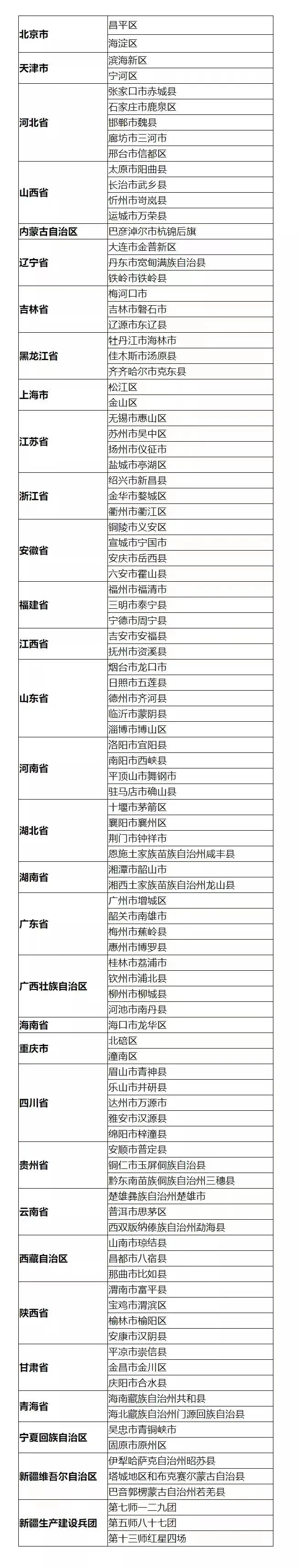 2021年全国村庄清洁行动先进县名单