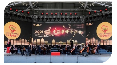 金色音符草坪音乐会奏响上汽MAXUS音乐谷。上海资深音乐家陈宣雷指挥上海爱乐协会新天地乐团,为观众带来《蓝色多瑙河》《溜冰圆舞曲》《肖斯塔科维奇第二圆舞曲》等名曲。