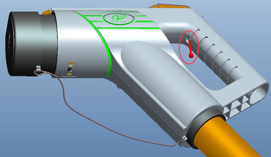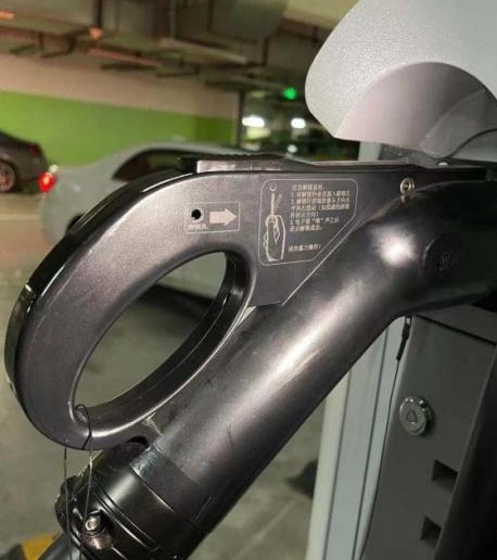 注:在充电枪的右侧/后方/内侧有解锁孔,用细针(可用回形针等代替)插入解锁孔,进行解锁。