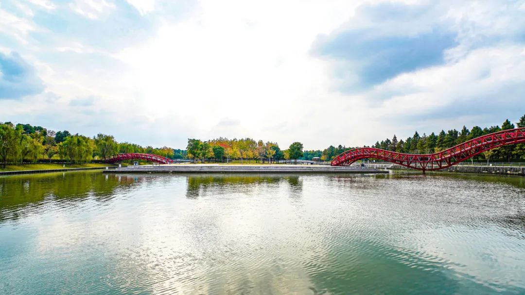 华翔绿地位于申昆路上,申滨南路和高虹路之间,占地面积约20.49万平方米,为虹桥国际中央商务区内建成的四大绿地之一。值得一提的是其中两座钢结构“红桥”,设计新颖,造型独特。新虹街道相关负责人表示,华翔绿地公园日均入园约200人次,请广大游客和市民朋友们提前做好行程安排,由于施工带来的不便敬请谅解,如提前完成工程,则开园时间另行通知。