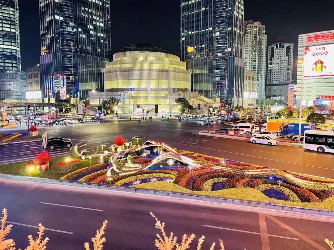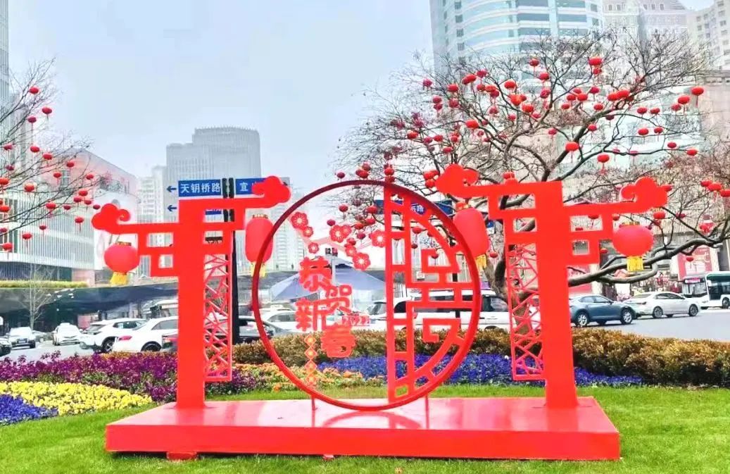 漕溪北路沿线运用洋水仙、黄色和橙色角堇、粉色和红色郁金香等多种冬季花卉,搭配镂空新年装置,寓意着各种喜庆,吉祥,宏伟,欢乐,热情的场面和心情,让市民尽情享受“年”的喜悦,接受“年”的祝福,留下2021年最美的合影,开启2022年新的篇章。