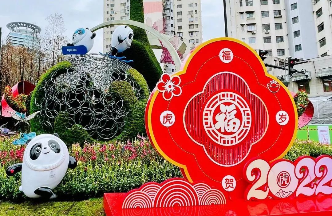 丑旧寅新宏图展,牛归虎跃春意浓。在2022年春节到来之际,徐汇区绿化市容局对重要区域和道路开展春节景观布置工作,通过主题景点、花卉景观、年味装饰等多种形式,共计使用草花28万余株,组合容器2895组,打造主题景点19个、花坛花境8个,营造全方位、立体化、多层次的春节景观氛围。多处主题景观中还融入了冬奥会元素,以此表达徐汇人民对精彩、圆满冬奥会的美好祝愿,用多彩场景演绎中国热情好客、奋发向上的精神风貌。