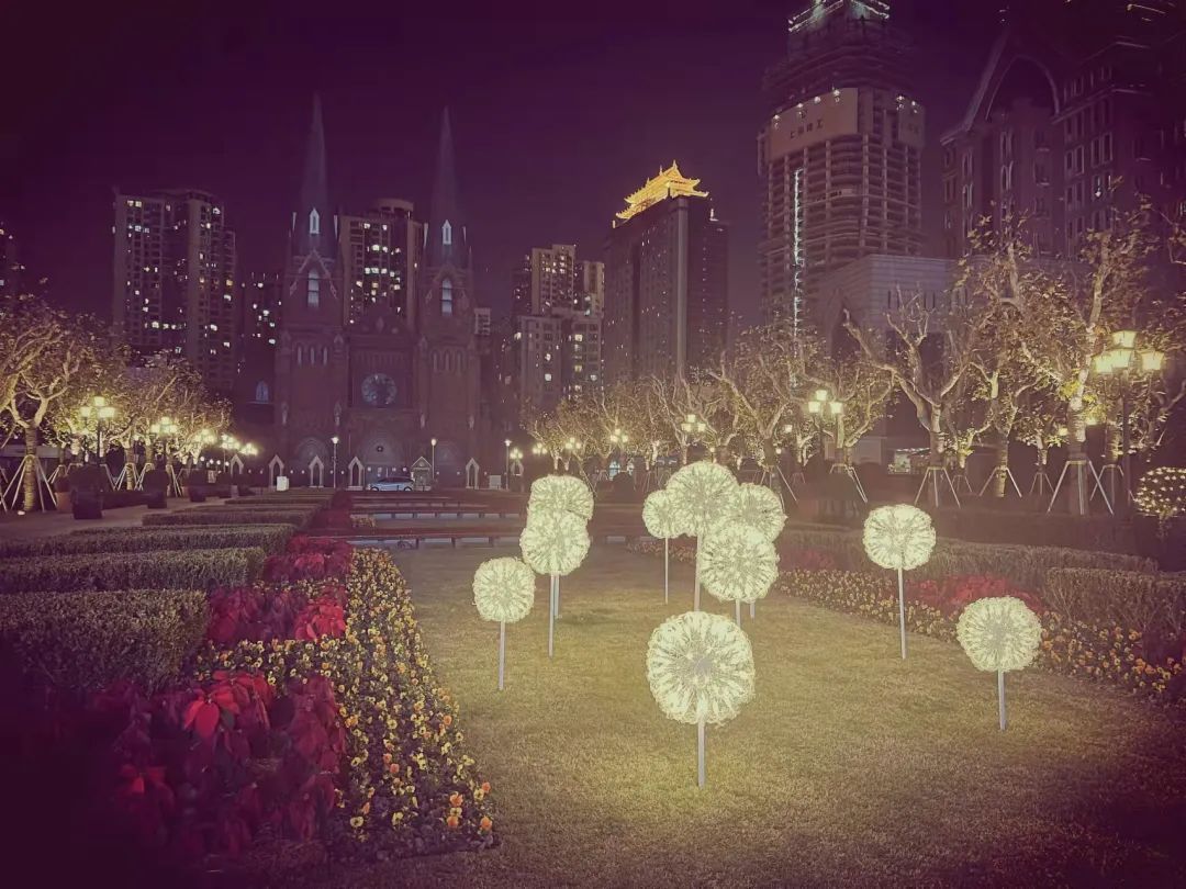 在徐家汇三角绿地,结合全息投影技术,将蝴蝶影像投入花境,绘就“彩蝶恋花”的诗意美景。“白天是群芳竞艳的秀场,夜晚则是火树银花的舞台。”