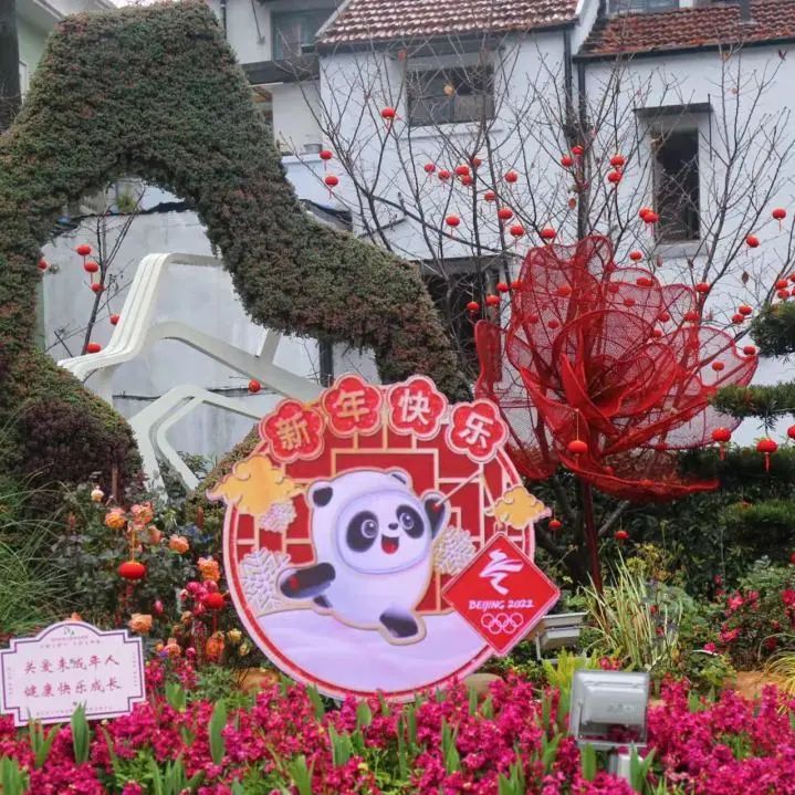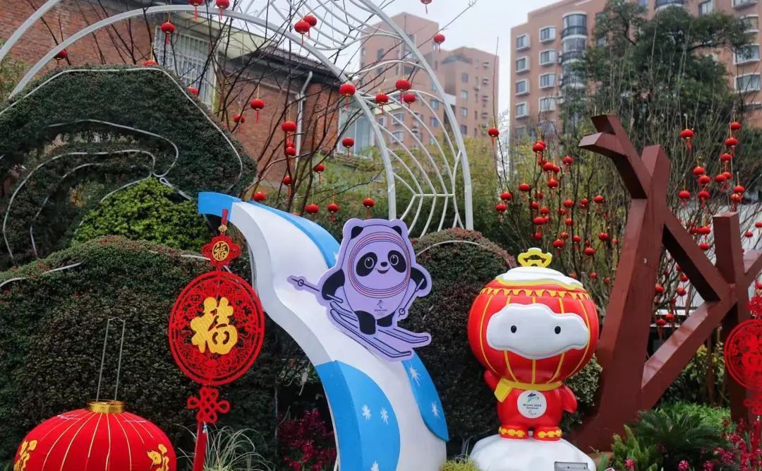 多处景观布置中还融入了冬奥会元素和吉祥物,在徐家汇中心三角绿地布置“雪如意”造型花境并配以吉祥物“冰墩墩”,象征了运动健儿乘风破浪、勇往直前的拼搏精神。