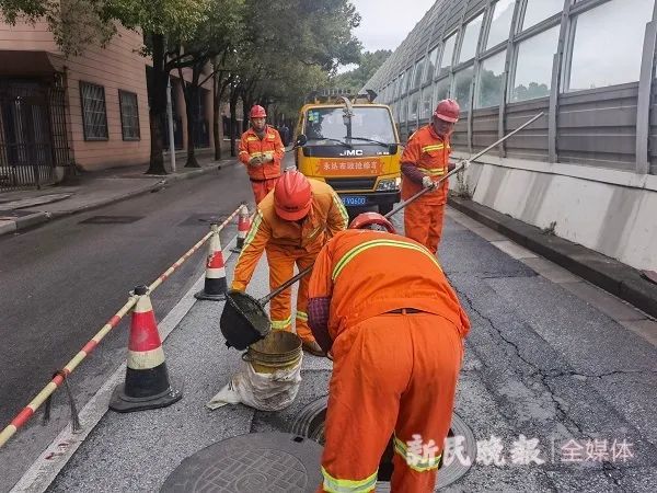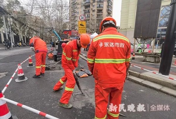 1月29日临近中午时,中央气象台发布的今年首个暴雪蓝色预警下,上海虽尚未下雪,但呼啸北风足以令人不寒而栗。寒风中,在长宁区北虹路750号门前的窨井边,身穿“永达市政”工作服的人员还在“掏黄金”。
