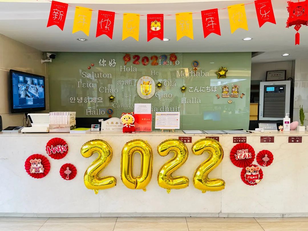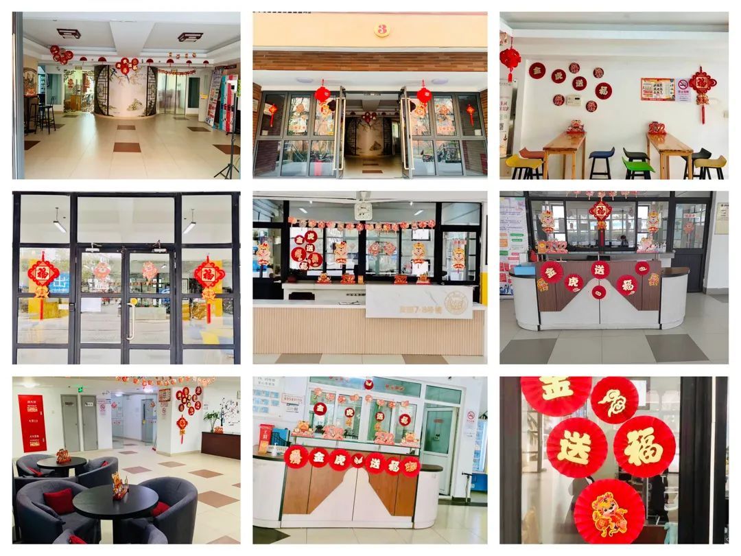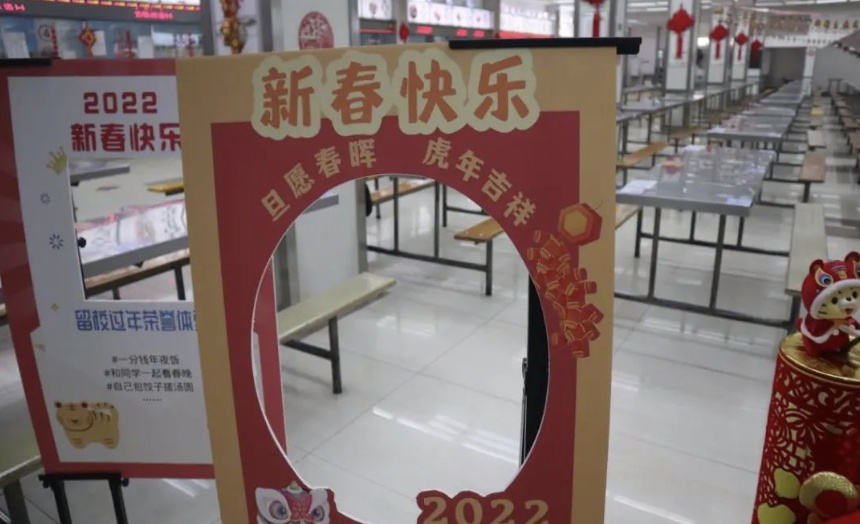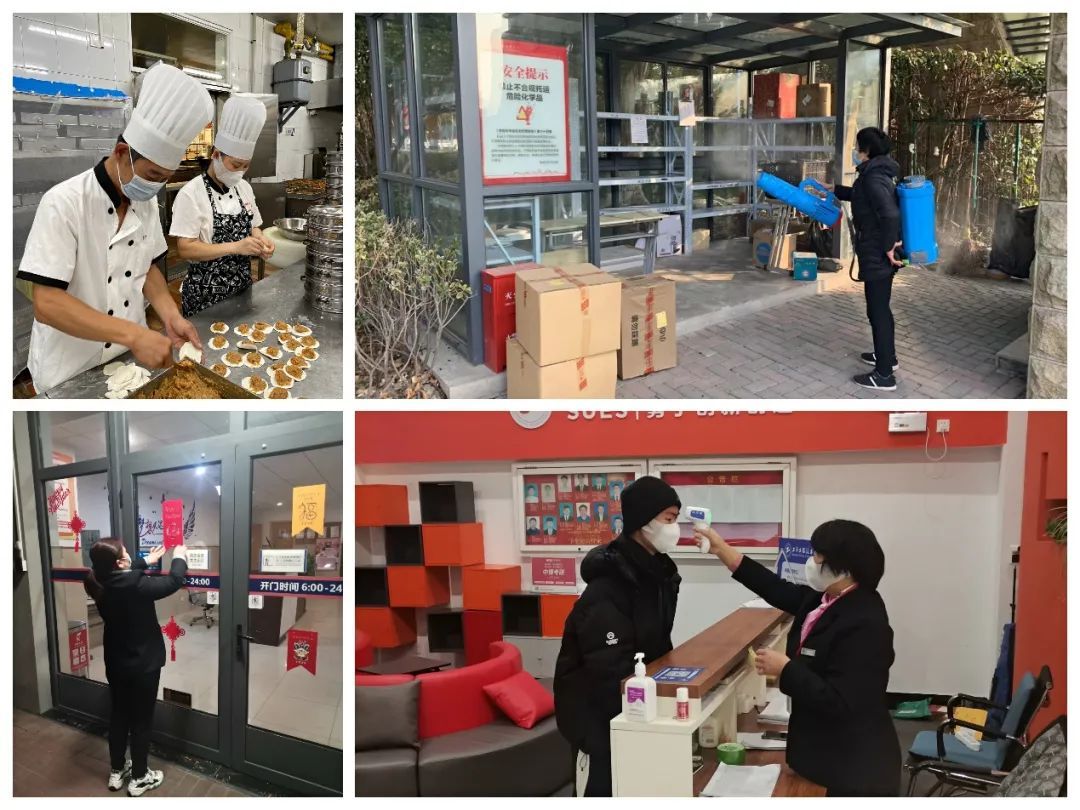 学校提前对校区进行安全大检查,水、电、消防设施逐一排查,并安排好人员值守;在留校师生入住集中管理宿舍前,物业进行了严格消杀工作,全面保障寒假期间留校师生的生活安全。为丰富留校师生生活,特别安排了包饺子活动,并且,小年夜到初三,食堂推出免费新年餐,对宿舍进行布置,让没有回家的师生体会团圆年的氛围。