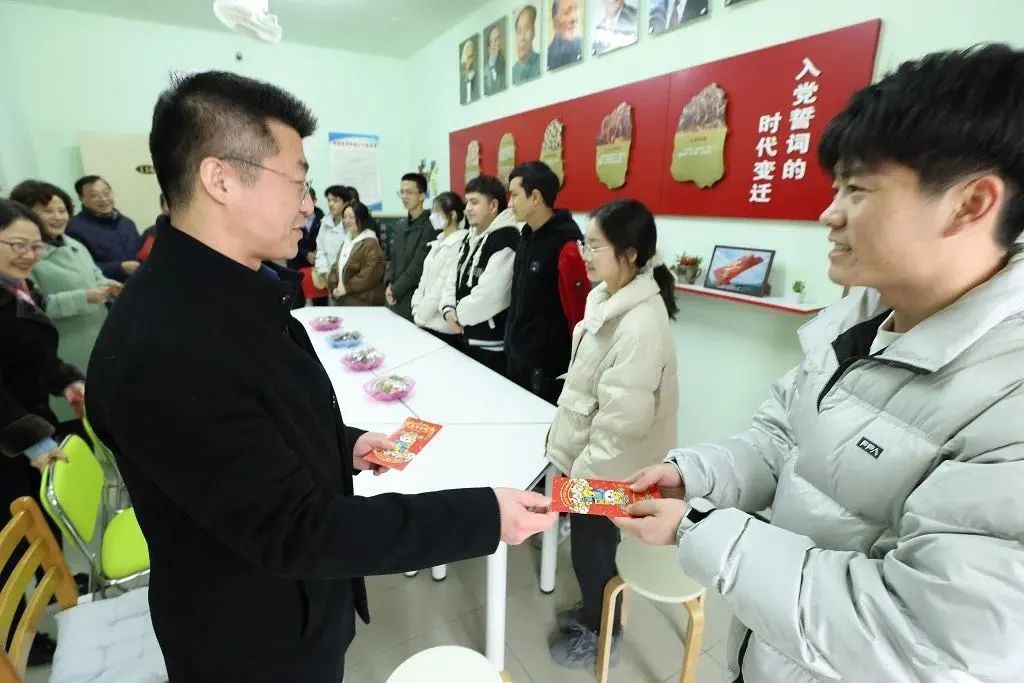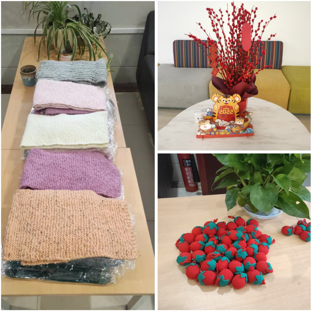 学校为因疫情、科研、学习等原因寒假留校的300多位学生准备了新年大礼包,还有浓浓的“年味套餐”。宿管阿姨还亲手编织了围巾、草莓小挂件送给每位留校学生,老虎玩偶为同学们带去了寒冬中的暖意。
