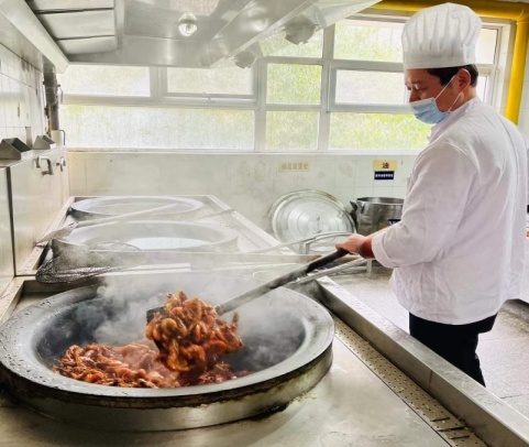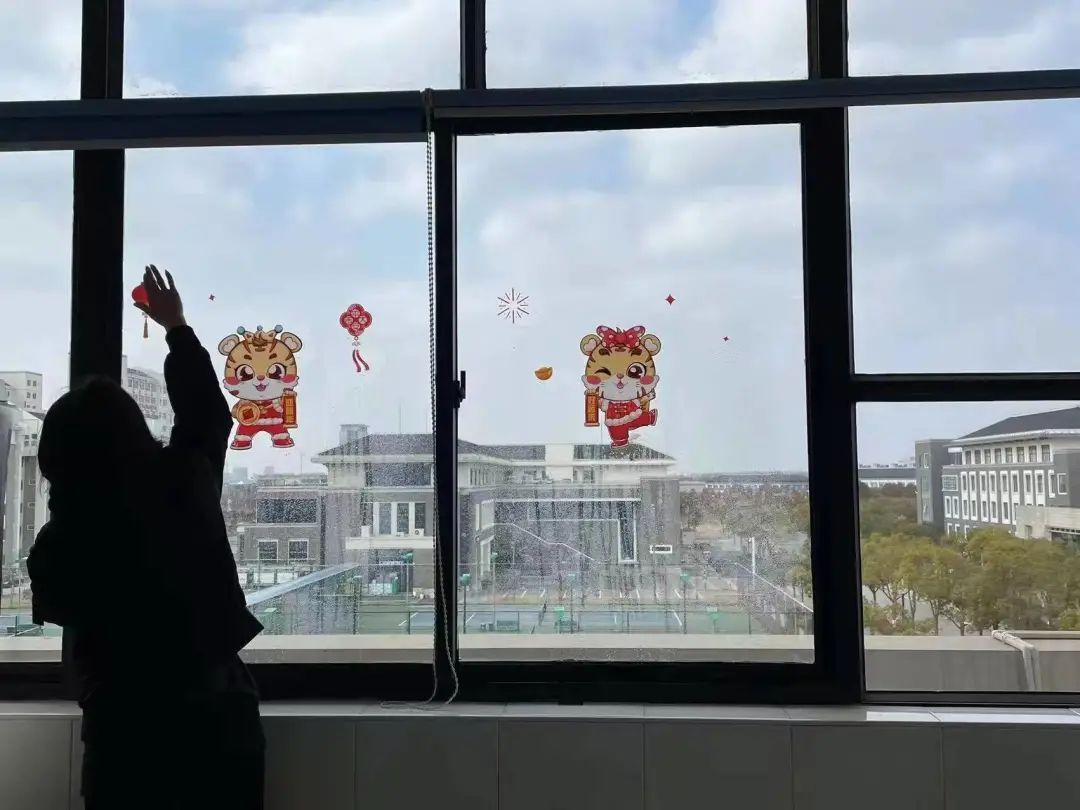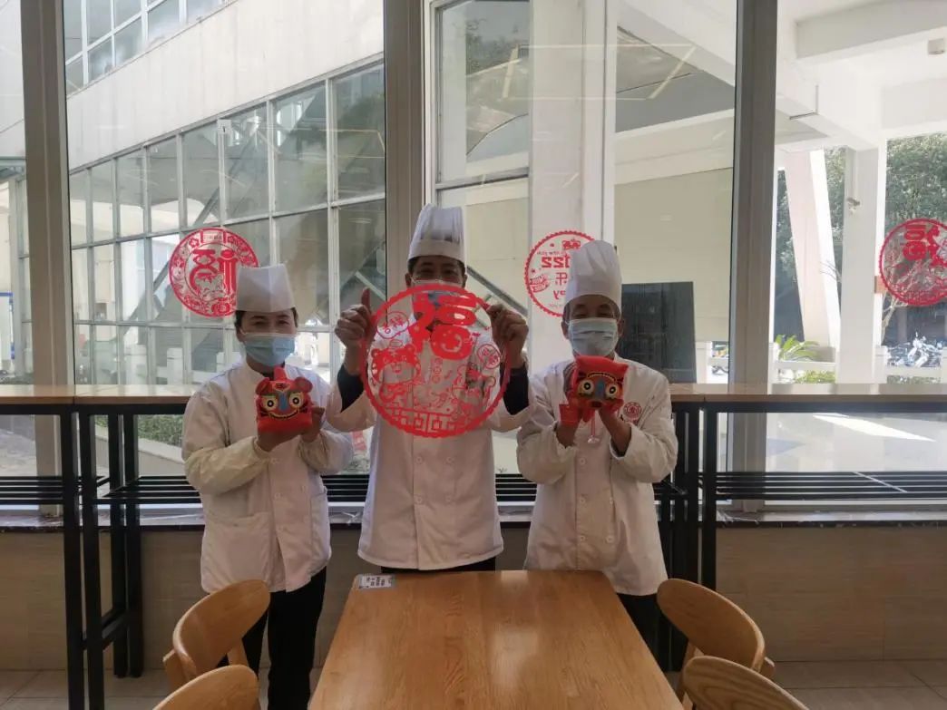 学校食堂各值班人员留守第一线,为留校师生准备可口美味的年夜饭,宿管阿姨们做好日常疫情防控工作,并在宿舍门窗上贴上窗花,为留校学生营造喜庆的宿舍氛围,保洁工作人员对校园各处每天开展消杀工作,筑牢安全防线。