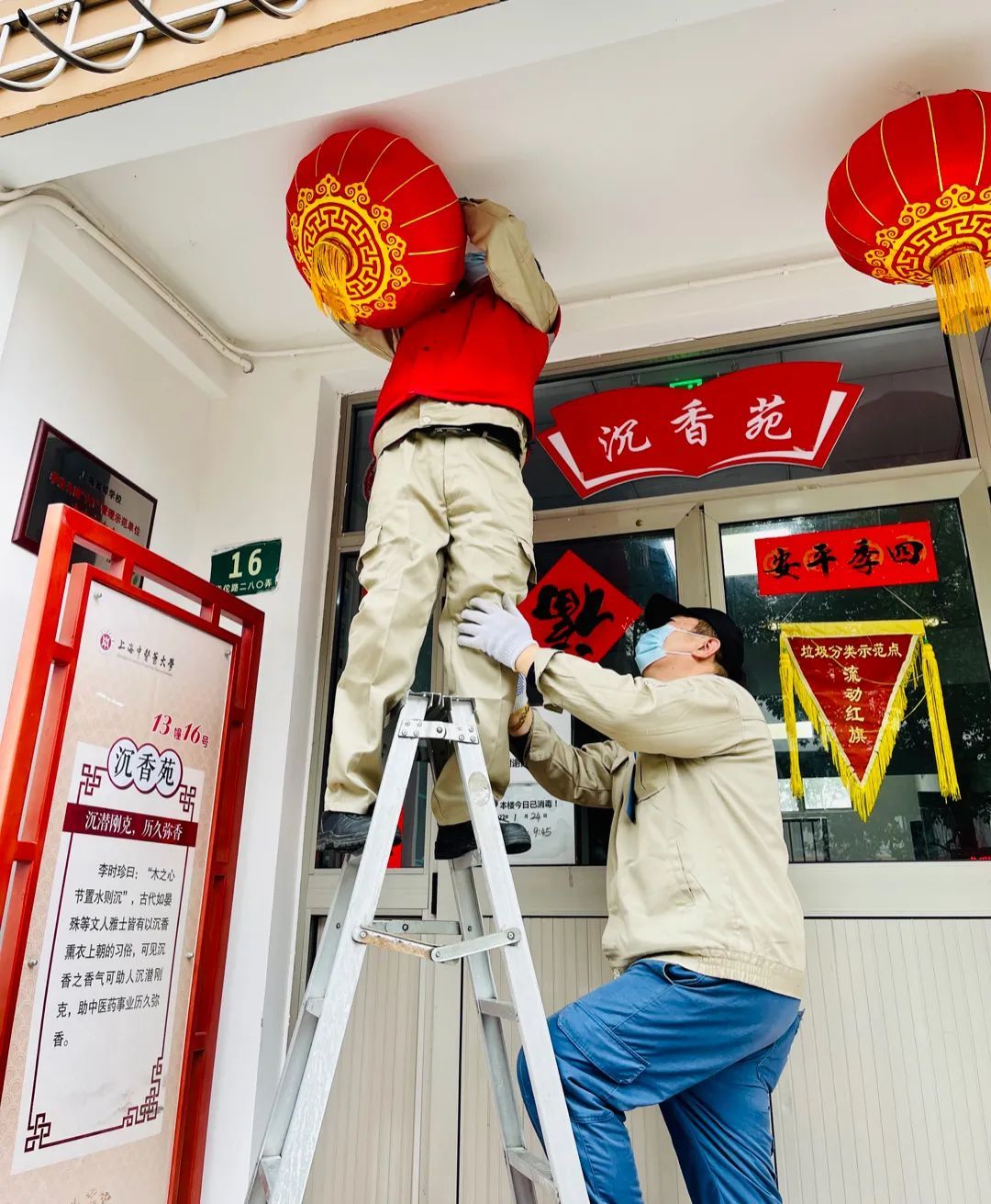 上海中医药大学安保、物业人员工作毫不松懈,24小时值守岗位,校园、宿舍区、公共浴室清洁等保障工作全面运行。随着虎年春节的脚步悄然靠近,节日氛围渐浓,为了使留校师生感受到“家”的温馨和浓浓的年味,学生宿舍和食堂布置焕然一新,处处洋溢着节日的喜庆。假期里,学校还将免费为留校师生提供丰富的年夜饭,并组织不同形式的慰问活动,让留校师生度过一个温馨、欢乐、祥和的春节,体会在校如在家的幸福。
