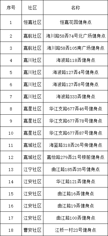 嘉定区江桥镇18个健身苑点