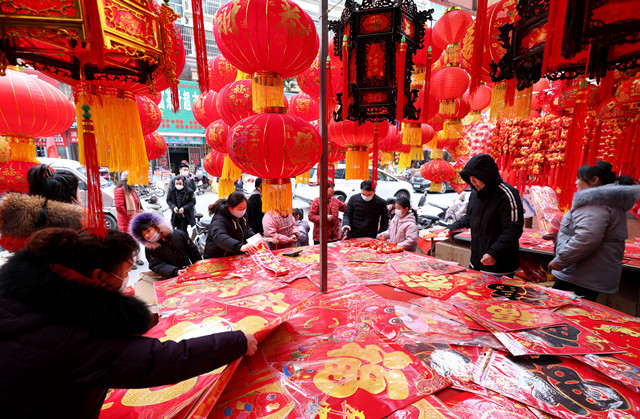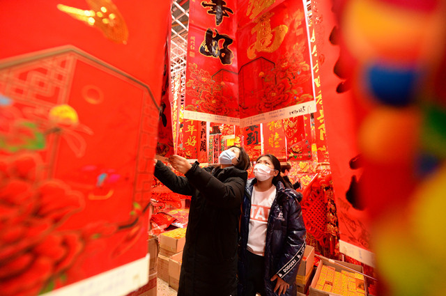 春节临近,各地居民选购春联、福字、灯笼等节庆饰品,并组织各类文化活动,红红火火迎接新春佳节。新华社发(于良意 摄)