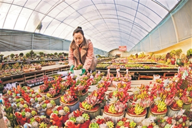图为山东省聊城市经济技术开发区现代农业示范园区凤凰花卉园,花农在打理花卉及多肉植物。商景豪摄(工人日报1月26日3版)