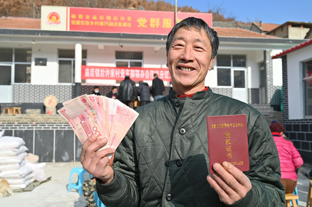 1月28日,社员慕贤生领到分红。他四年前入股3.2万,今年获得分红4800元。