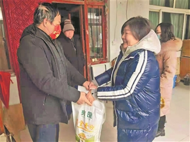 1月27日,山东省聊城市东昌府区古楼街道党工委和街道办事处机关工会走访慰问辖区职工。连日来,该街道党工委和街道办事处机关工会积极开展走访慰问活动,为辖区职工、居民送上粮油米面,铺上新被子,打扫卫生,挂上新的棉门帘,让他们温暖过新年。本报通讯员 马辉摄(工人日报1月28日2版)