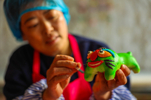 1月22日,在山东省荣成市城西街道水门口村一处农家院,民间艺人倪学敏在制作“萌虎”花饽饽。“胶东花饽饽”是山东省级非物质文化遗产,是胶东地区人们过年期间常用的面点。