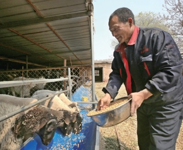 近年来,山东省聊城市东昌府区张炉集镇鼓励有能力有意愿的脱贫群众通过小额信贷发展畜牧业增收。李双阵村脱贫户、退伍残疾军人李顺一通过小额信贷成立了顺一种羊养殖场,主要以养殖鲁西黑头羊为主,现存栏量已达50余头,年增收达3万余元。张炉集镇邀请山东省农业科学院畜牧兽医研究所的科技人员在黑头羊养殖方面对李顺一进行技术指导,以科技助推黑头羊产业发展。图为李顺一正在给羊喂料。焦阳摄(农民日报1月24日6版)