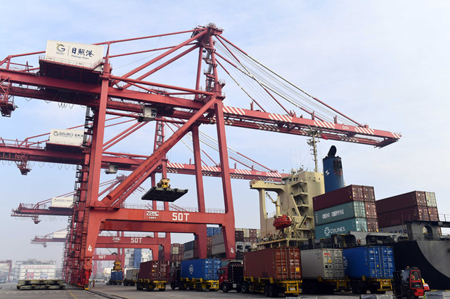 从2022年1月1日至24日,山东省港口集团日照港完成货运量34万标箱,同比增长21.4%;国际班列货运量同比增长81.5%,实现开门红。新华社记者 郭绪雷 摄