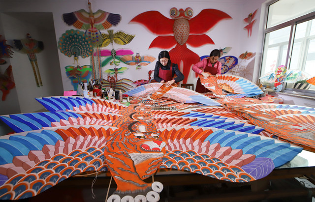 1月25日是北方小年,山东潍坊寒亭区杨家埠村的风筝、年画艺人们赶制年画和各类风筝,喜迎即将到来的虎年春节。新华社发(孙树宝摄)