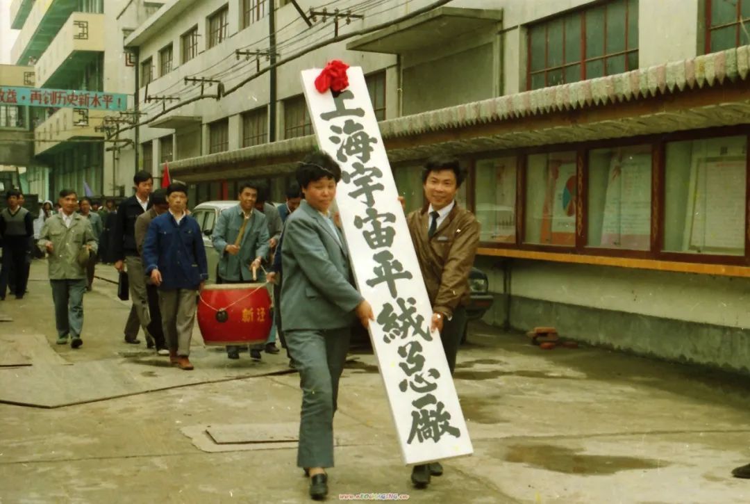 望春花实业股份有限公司的前身上海宇宙平绒厂,图为成立挂牌仪式