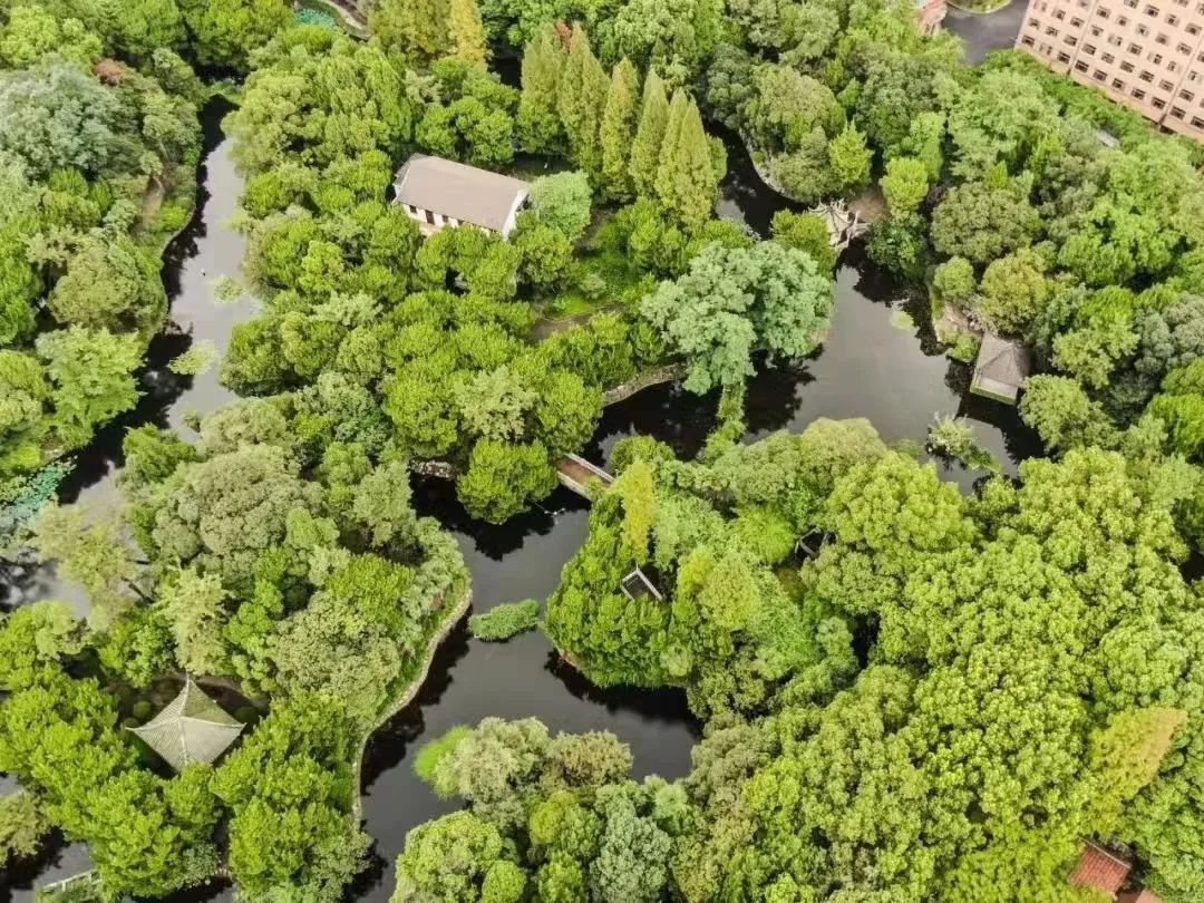 叶家花园的绿植茂盛,品类丰富,在步道边遍植龙柏、松树、香樟、红杉、棕榈、竹丛,漫步其中,让人心神愉悦流连忘返。