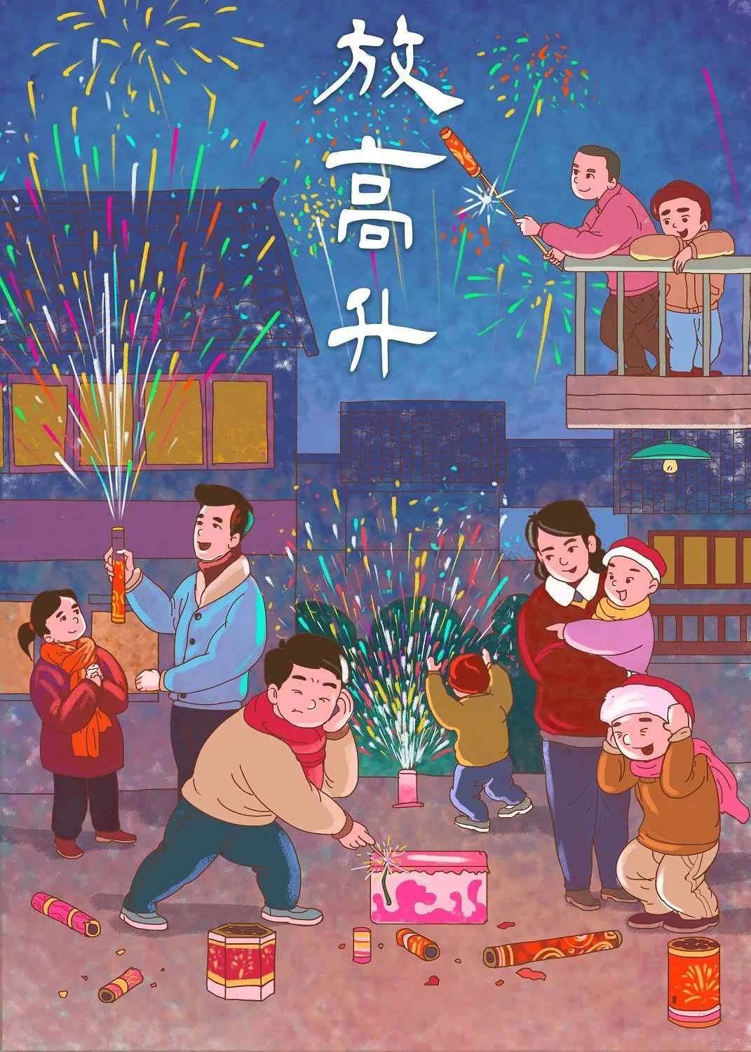 吃过年夜饭,就到了小朋友们最喜欢的节日习俗放高升了。