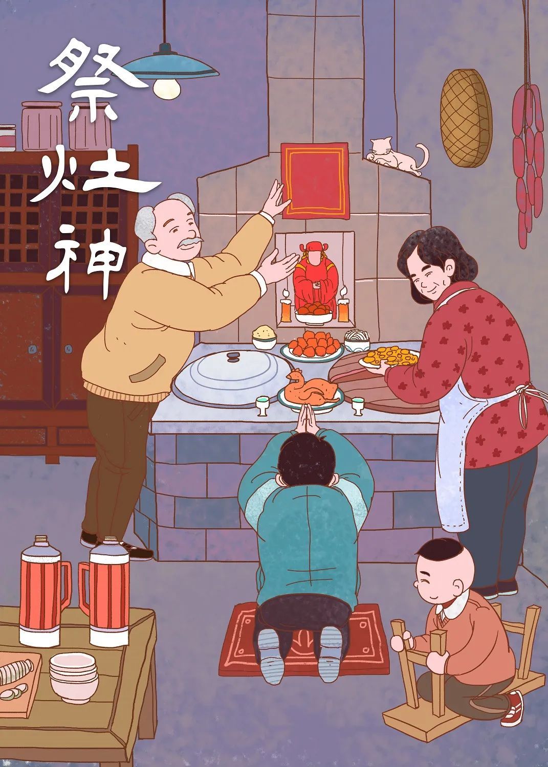 除了扫尘,腊月二十四这天还有一项很重要的年俗就是祭灶神。灶神的职责就是执掌灶火,管理饮食,后来扩大为考察人间善恶,以降福祸,所以几乎老百姓家家户户都设有“灶王爷”神位。