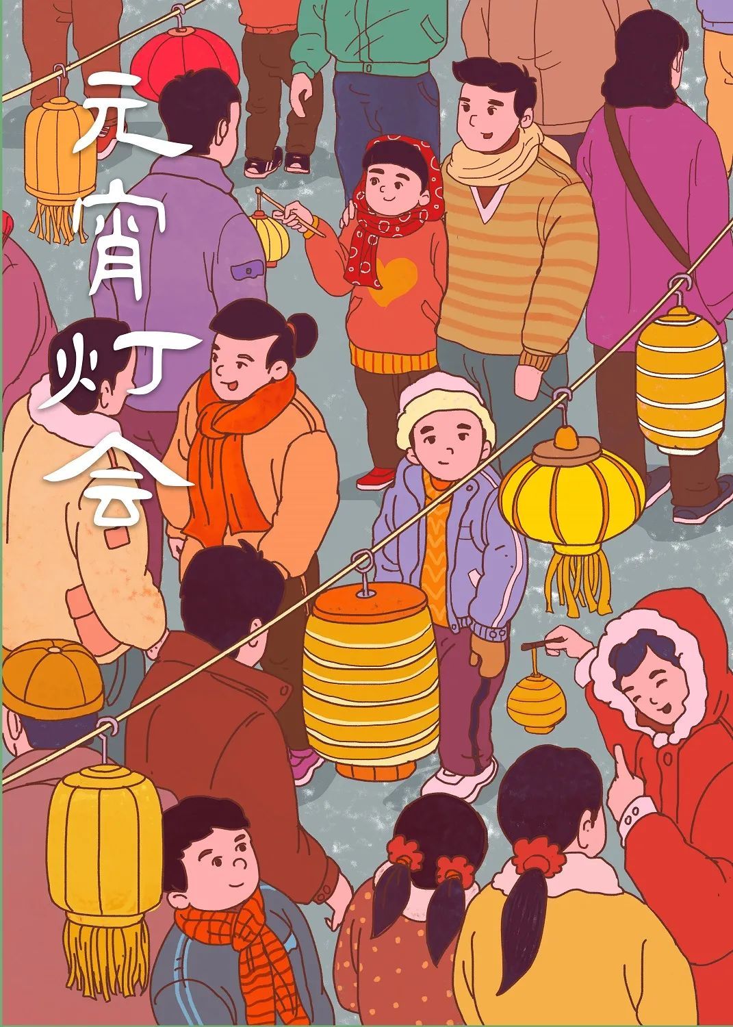 古人称“夜”为“宵”,正月十五是一年中第一个月圆之夜,所以称正月十五为“元宵节”。元宵节燃灯的风俗起自南朝时期,到了唐代,赏灯活动更加兴盛,皇宫里、街道上张灯结彩,还要建立高大的灯轮、灯楼和灯树,唐朝大诗人卢照邻曾在《十五夜观灯》中以“接汉疑星落,依楼似月悬”来描述元宵灯会的盛况。