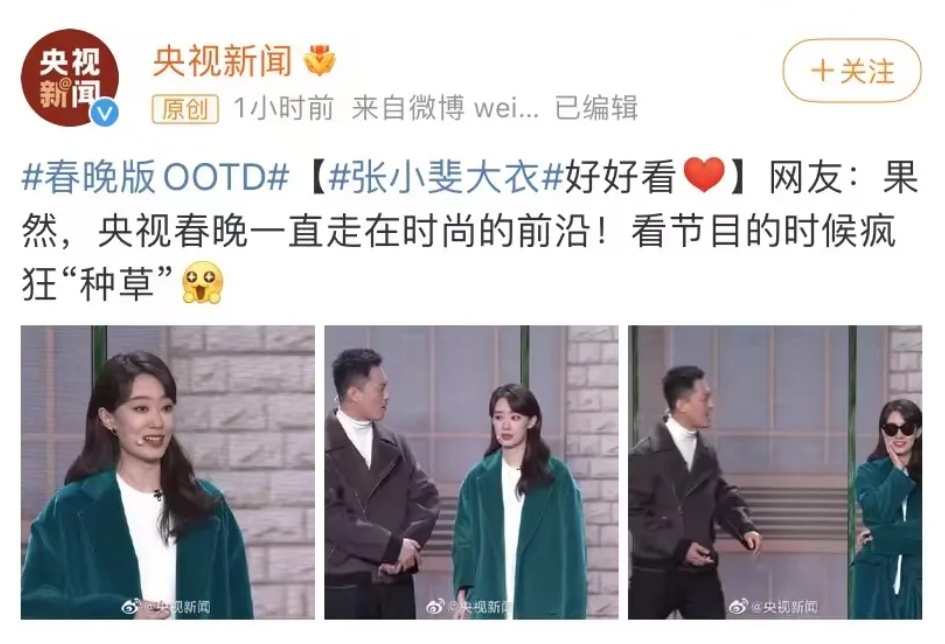 鼠年春晚,张小斐带火了一件粉色毛衣;牛年春晚,她身上的白色毛衣成爆款单品;虎年春晚,她穿的衣服又火出圈了。