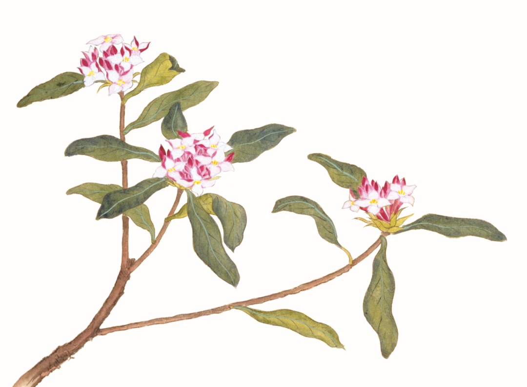外貌条件已然出众,传说加分又得佳名,偏偏瑞香还懂得挑选开花的时间。作为二十四番花信风大寒一候之花,它在早春二月已能开花。在客至频繁又缺乏绿植装点的春节,色香姿韵名俱佳的瑞香,自然而然成为国人最为深爱的年花之一。
