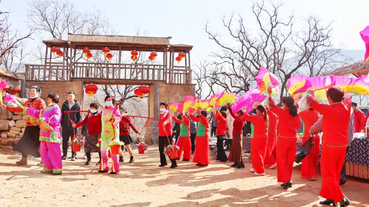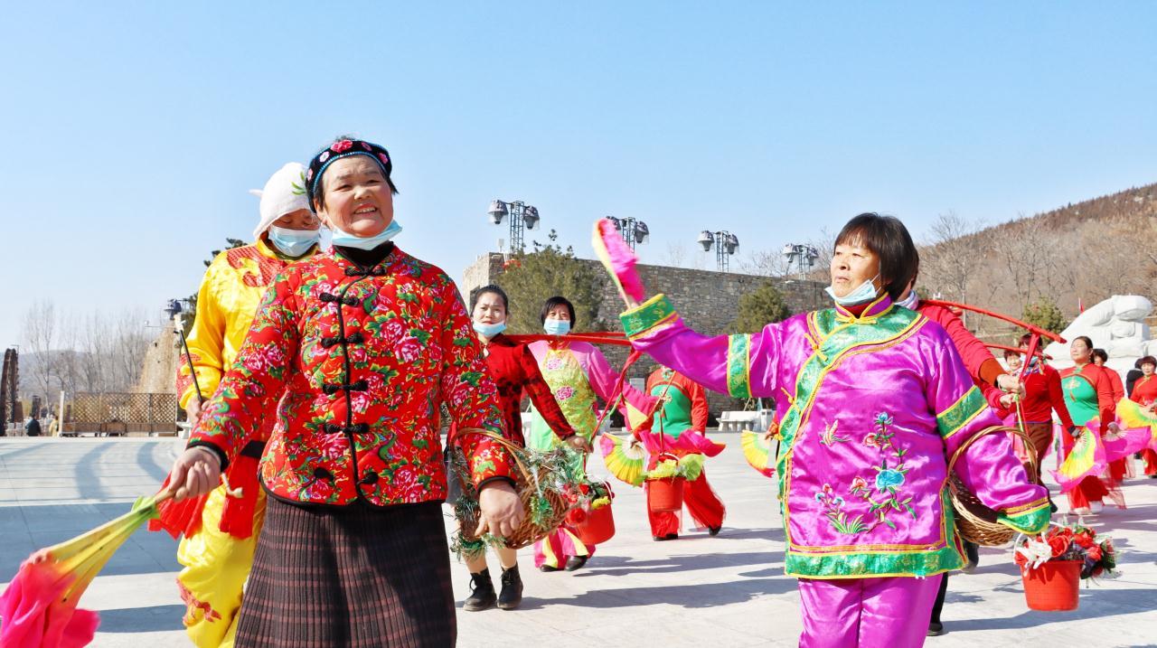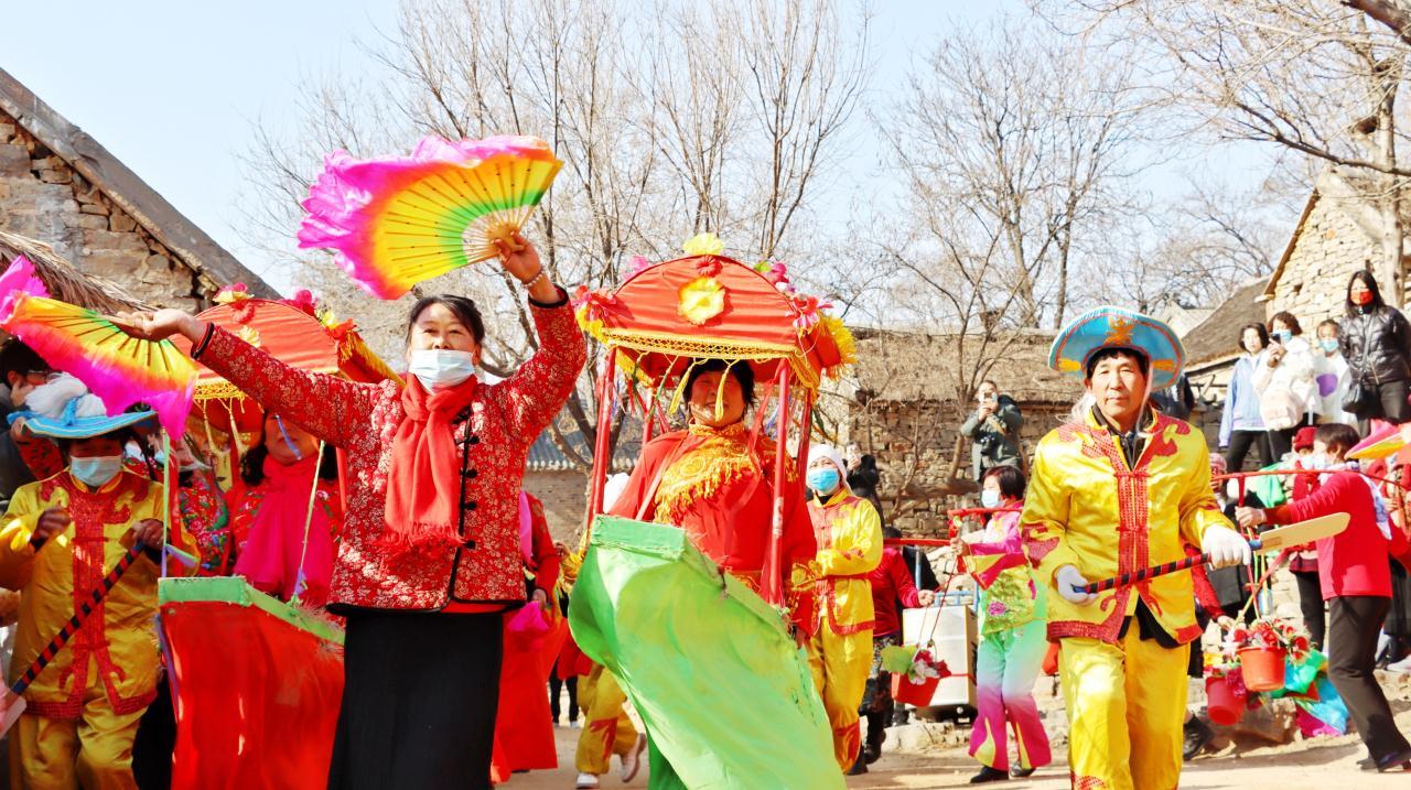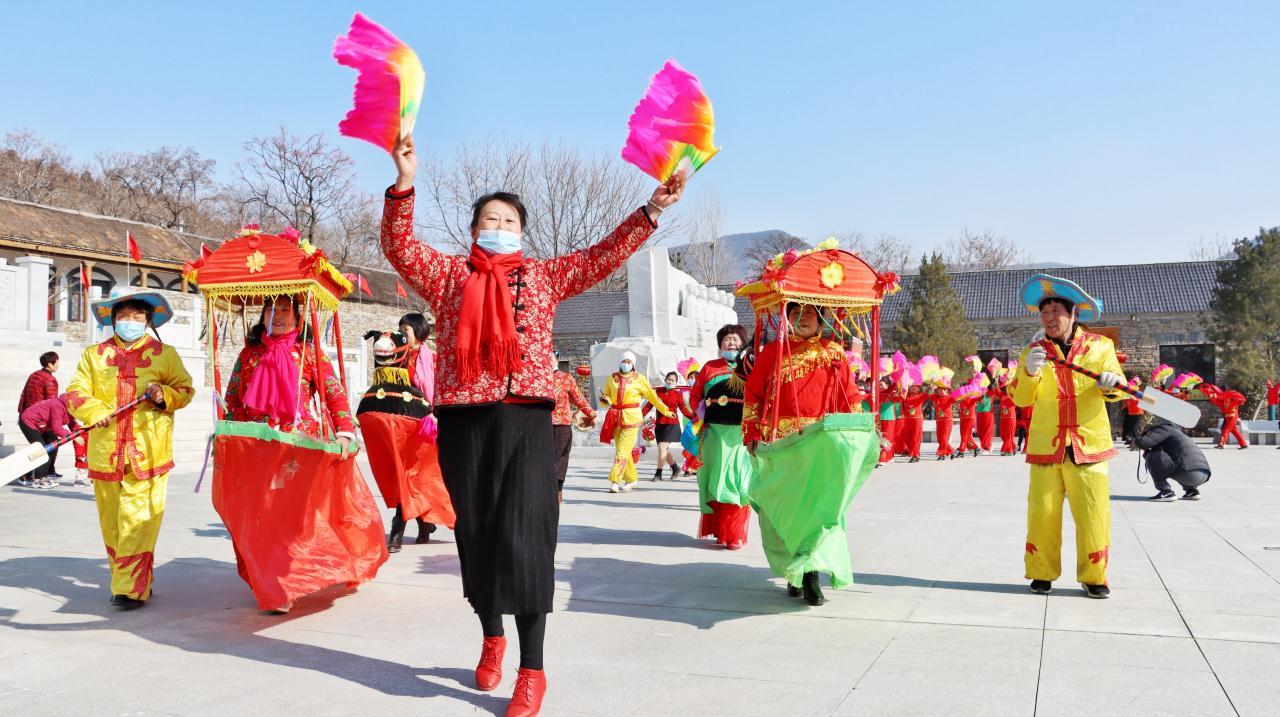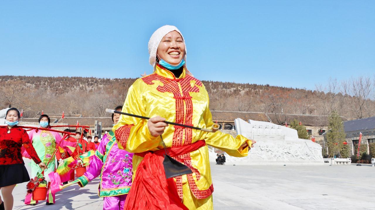 锣鼓震天,锁呐阵阵,红男绿女,翩翩起舞……没有秧歌不叫年,2月4日,临沂市沂南县马牧池乡常山庄村,由当地村民组成的秧歌队,在《拥军大秧歌》旋律伴奏下,扭起热情奔放的沂蒙大秧歌,吸引众多游客,为人们奉献了精彩的民俗文化、红色文化大餐。(大众日报记者 卢鹏 通讯员 郑树平 报道)