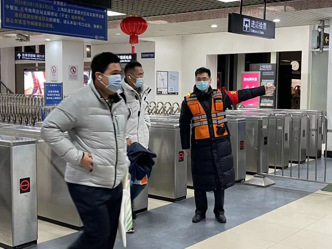 同时,5号线颛桥站与莘庄站进行联动,在两站关键点位人员,统一穿着三件套(背心、红袖章、肩灯),让乘客能一眼辨别,提高服务质量。