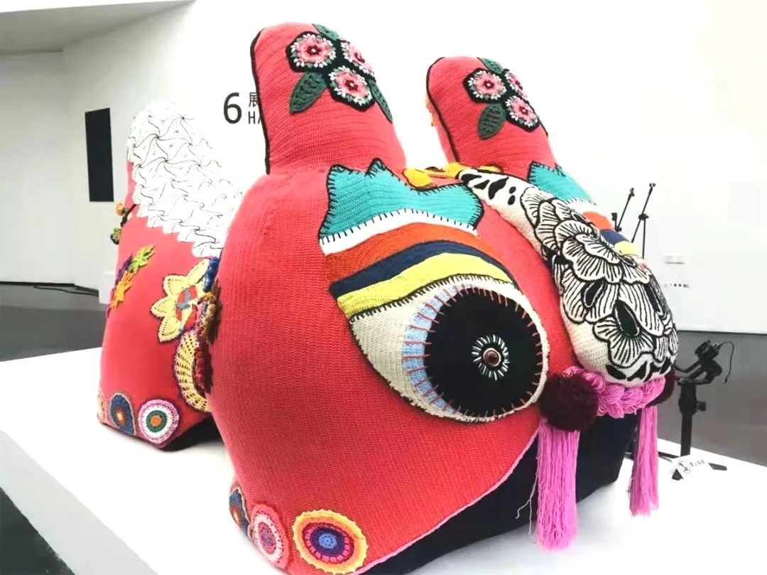 由莘庄钩针编结团队精心设计制作,历时1个月。整件作品所用线料为宝宝棉,团队经反复搭配比对,挑选颜色二十多种,运用辫子针、短针、中长针、长长针、半边短针、枣形针、金丝密枣针、内钩针、外钩针、虾结针等多种针法,让作品更富动态的视觉感受。一针一线纯手工的编结技艺,呈现“虎宝”精妙形态,寓意吉祥安康、幸福喜乐。