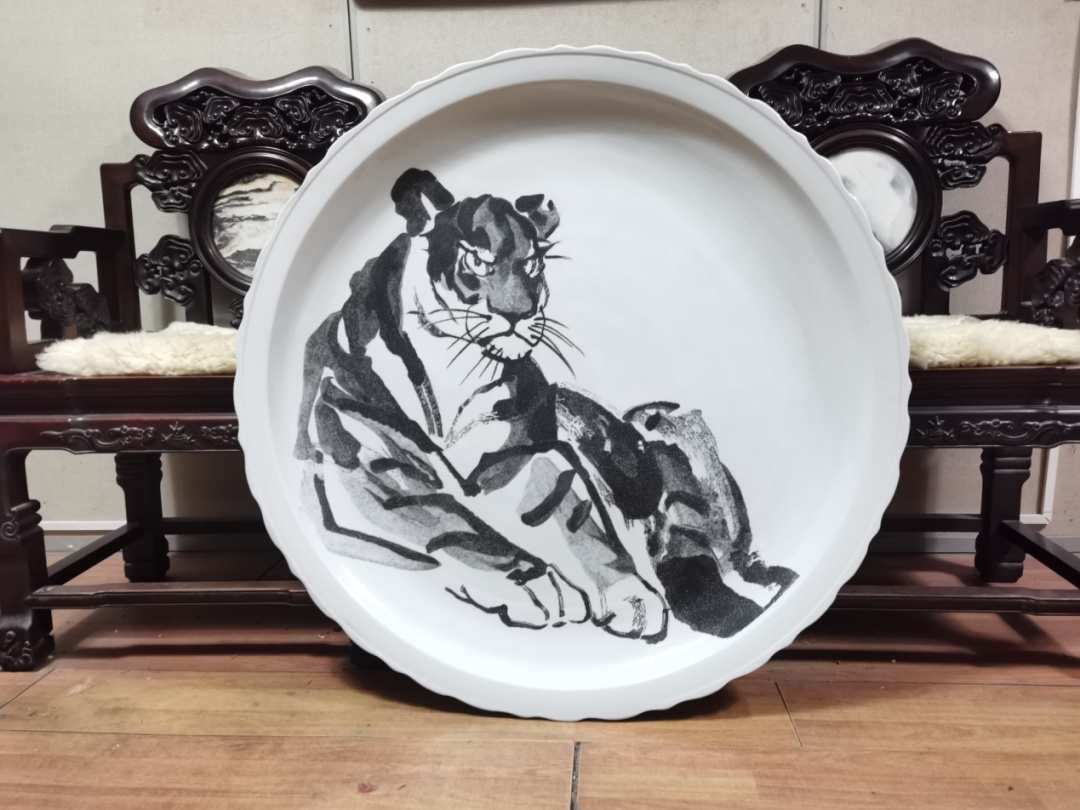 瓷刻诞生于明代,盛行于清末,是在上釉烧制成的素瓷瓷器上,用刀具雕刻书、画作品的一种工艺美术制品。其制作时,先用刀尖刻出点线,在刻痕内填以墨汁或颜色,再涂上蜡。作品构图清新,线条流畅,刻画形象生动如生,既保持了传统书画的风格,又具有晶莹光洁的瓷面效果。