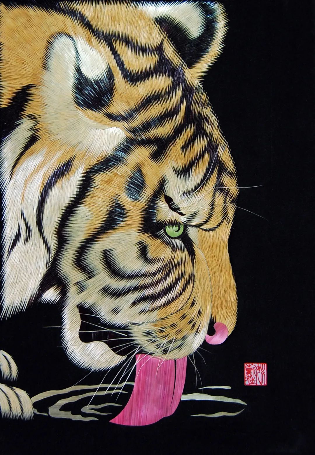 虎文化内容丰富多彩,从文字、语言、诗歌到更为广泛的民间故事、神话传说、儿歌民谣等,虎的形象无所不在,早已深入人心。随着壬寅虎年的到来,上海众多非遗传承人、爱好者们也创作了许多“虎元素”的作品,虎年剪纸、萌虎香囊、面塑虎、竹刻虎……一起来大饱眼福↓