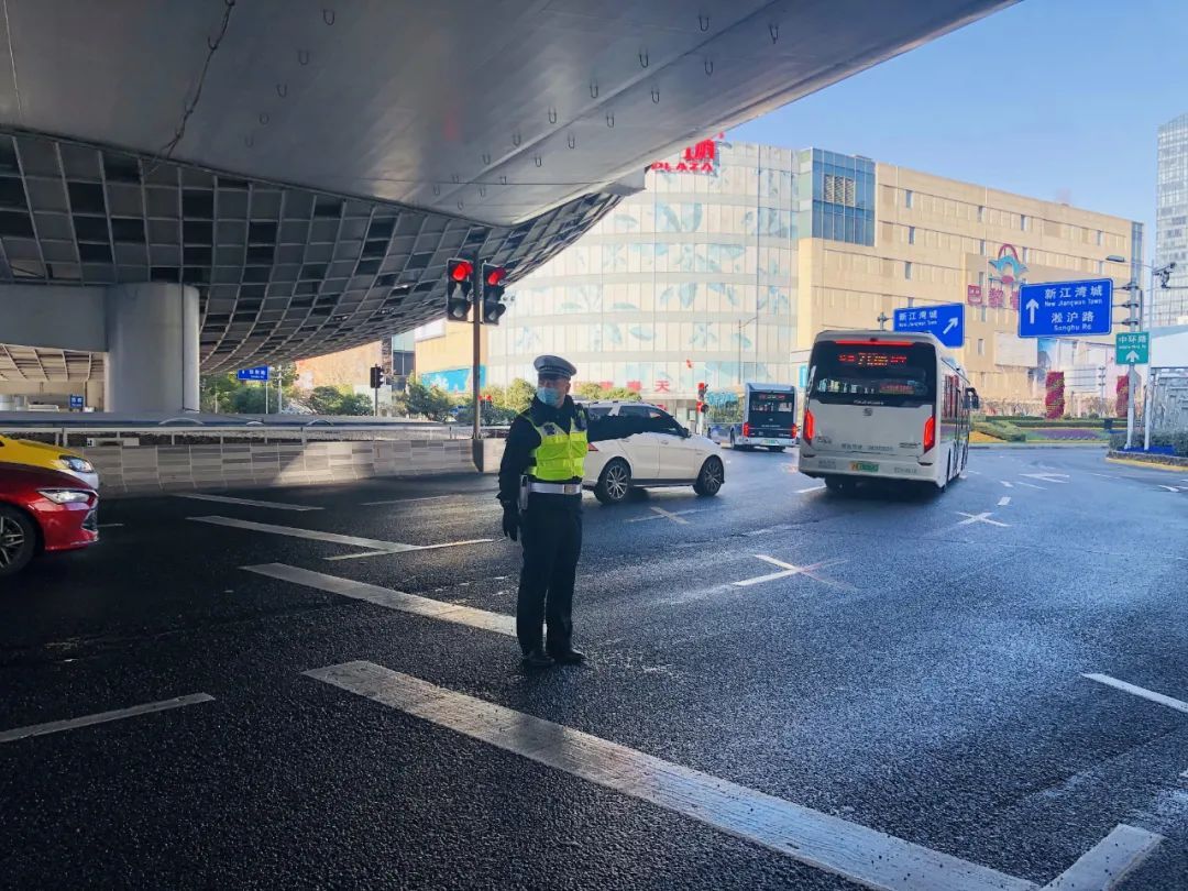 与此同时,杨浦交警还在每一家商场的停车场入口处,安排警力实时疏导车辆,根据提前掌握的五角场商圈停车资源数据,安排车辆前往还有剩余车位的停车场,保障停车场入口处车道通畅。